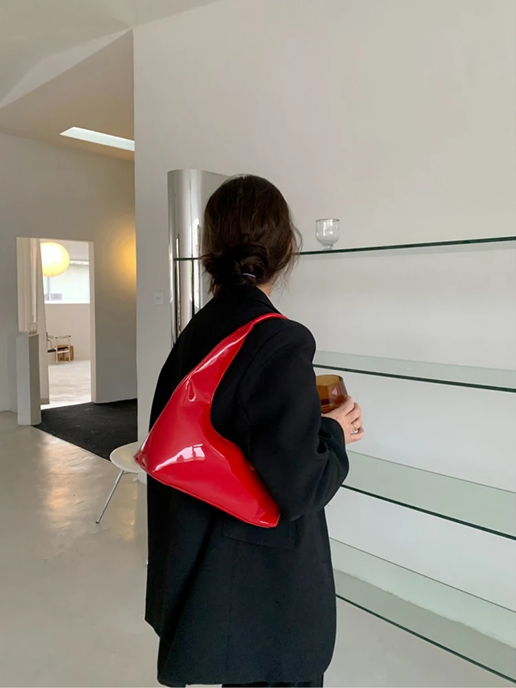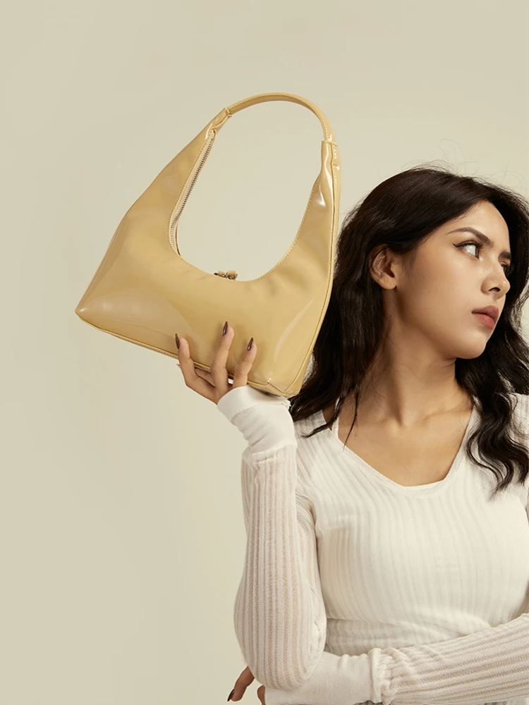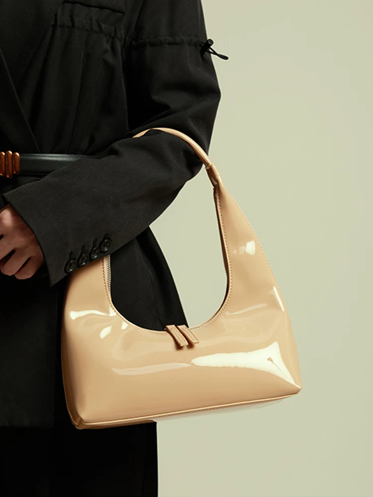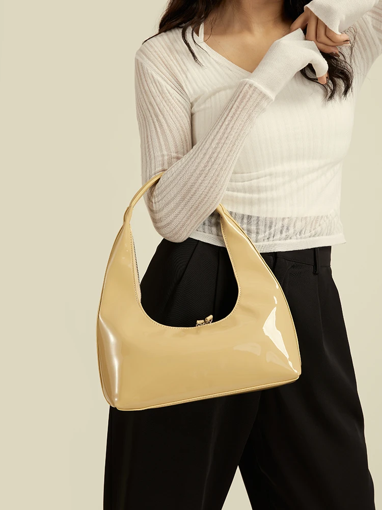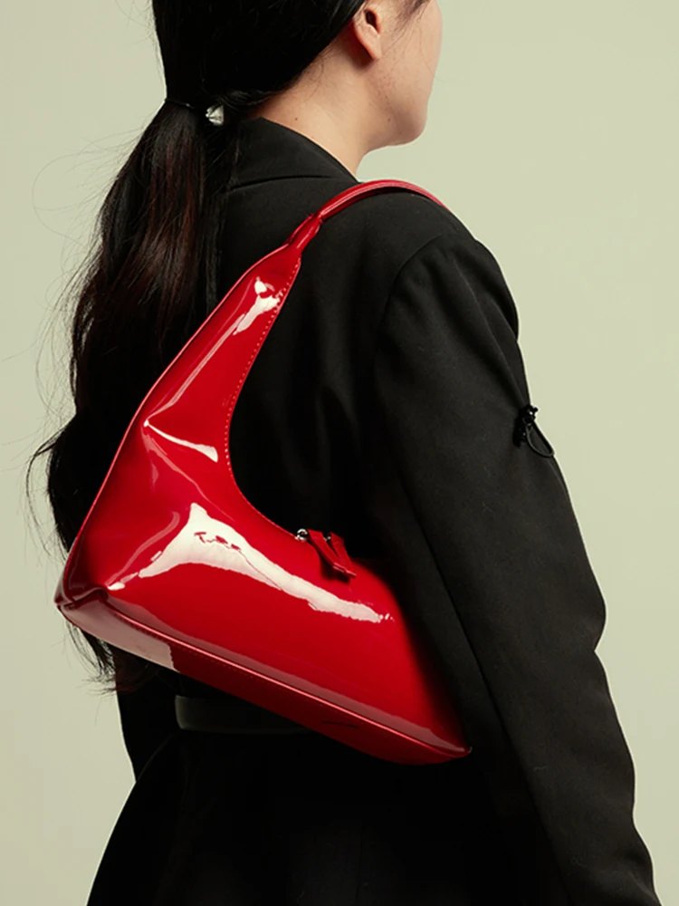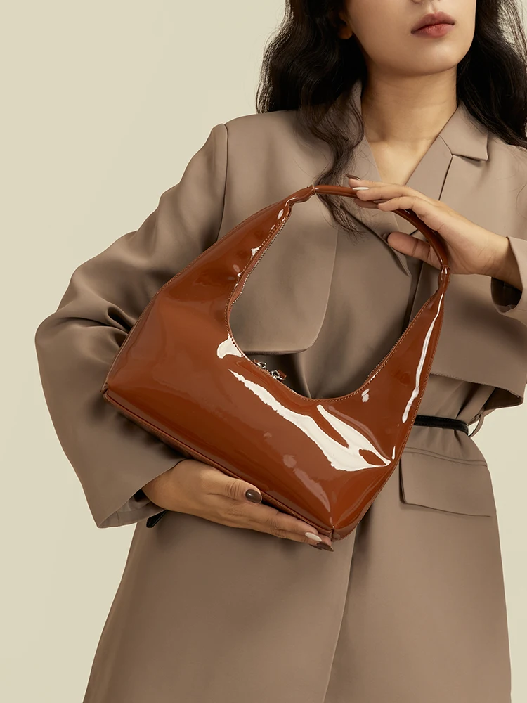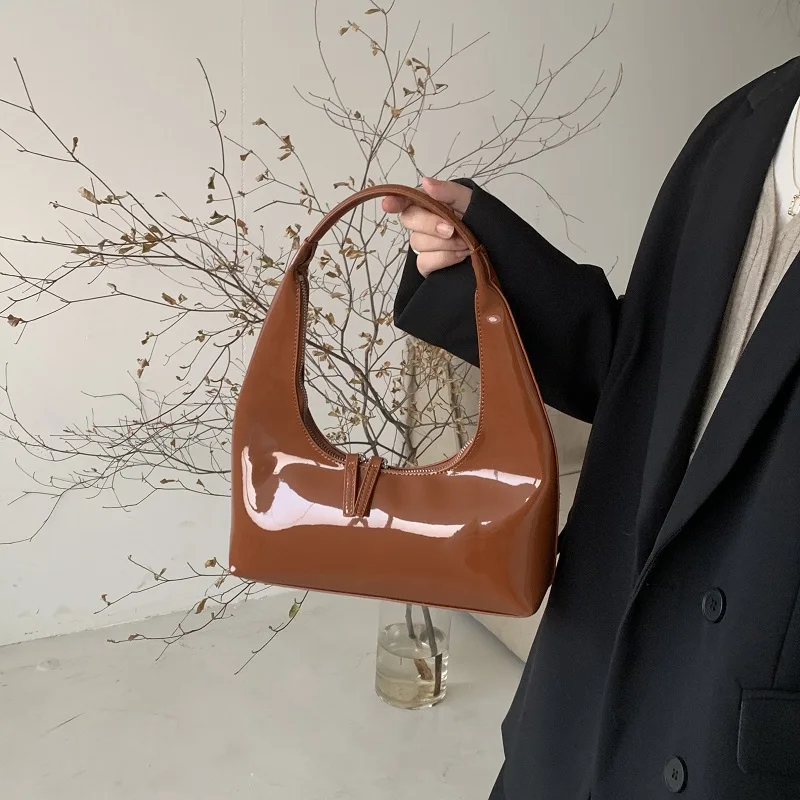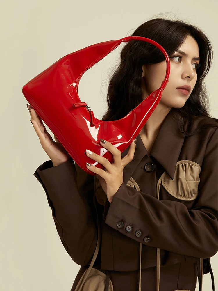 Patent Leather Half Moon Bag Size: Length: 27cm (10.6in) Thickness: 9cm (3.5in) Height: 12cm (4.7in) Shoulder strap height : 22cm (8.7in) (Manual measurement error exists 1-3cm)