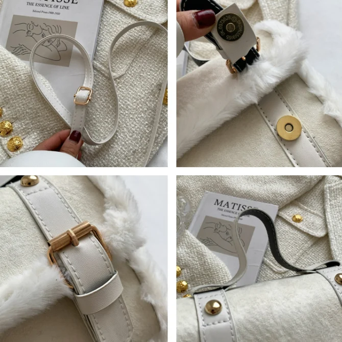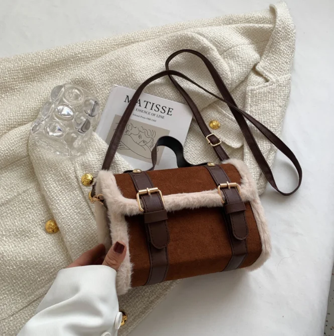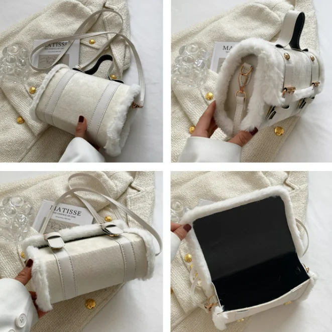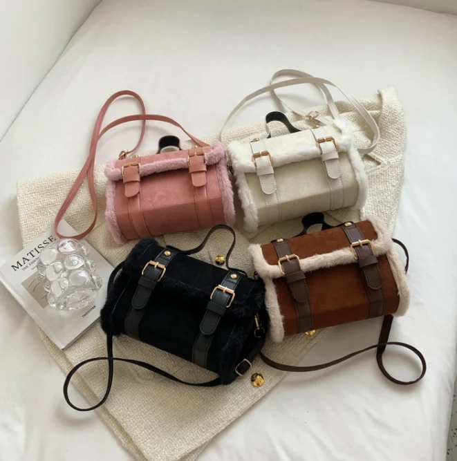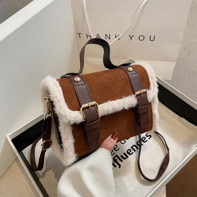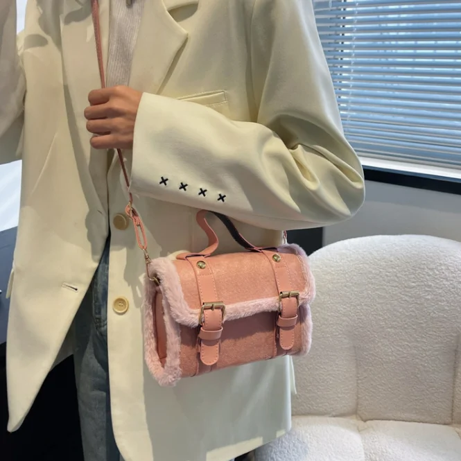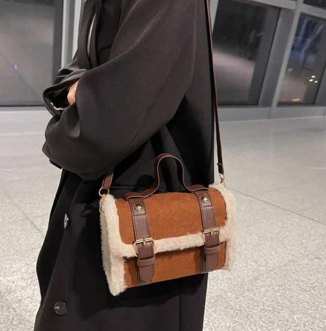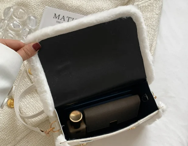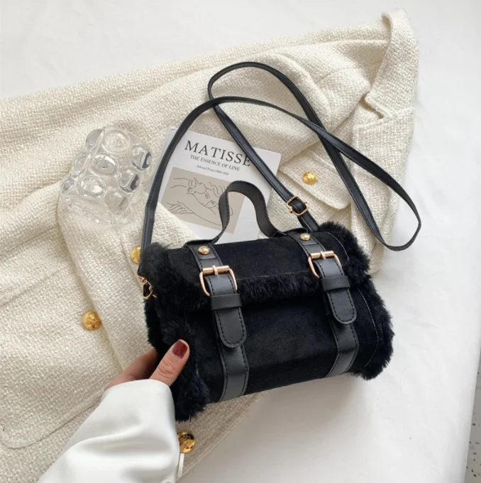 Leisure Autumn And Winter Lamb Plush Small Bag Women'S 2022 New Fashion Messenger Bag Simple Black Square Bag