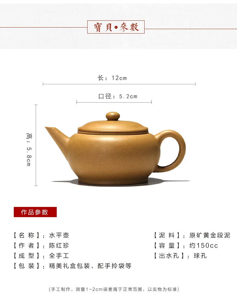 Level pot hall yixing monohydrate undressed ore manual recommended sample tea kungfu a factory old gold mud 150 ml