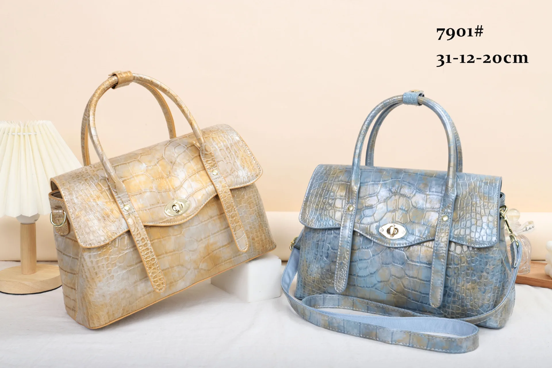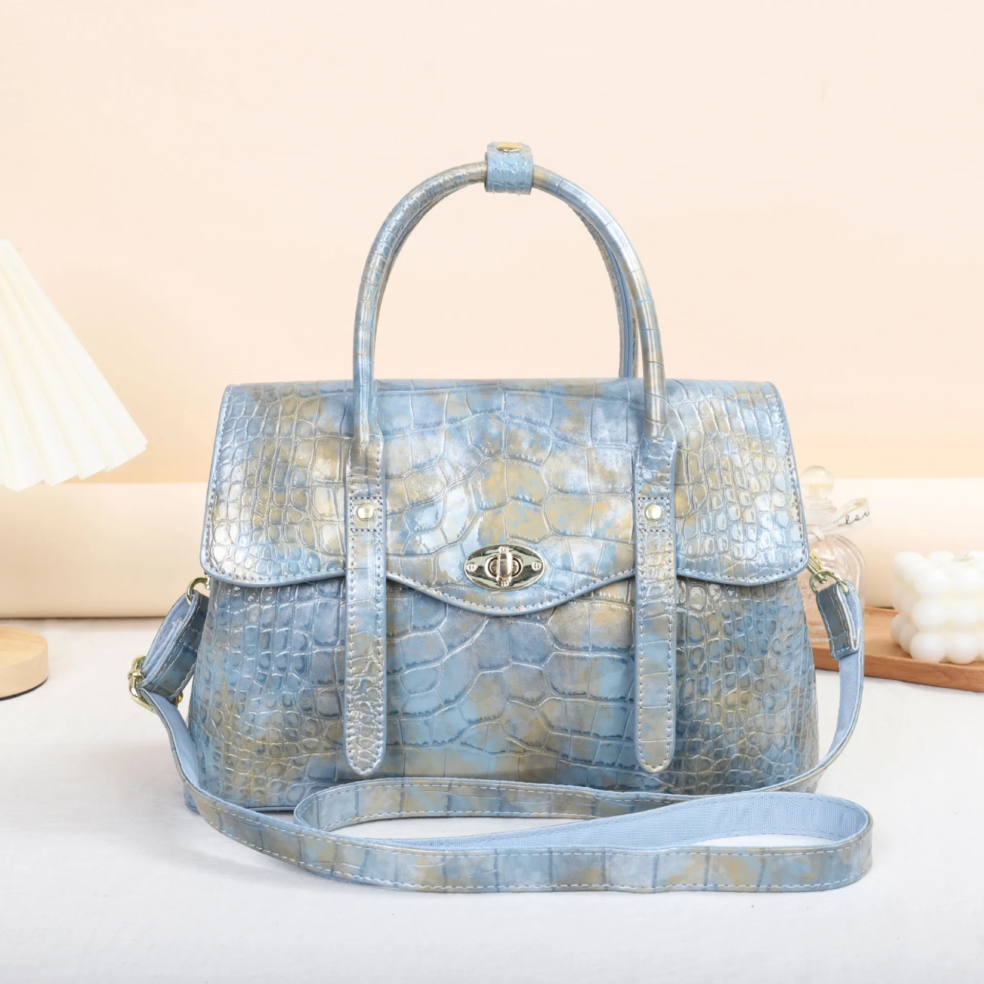 Light Blue Leather Women's Handbags Lady Big Shoulder Crossbody Tote Bag Fashion Retro Trendy Large Capacity Top Handle Bags