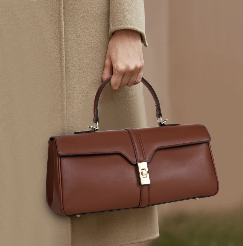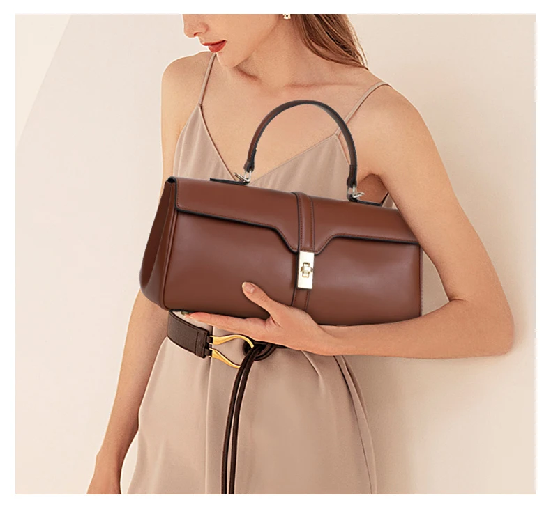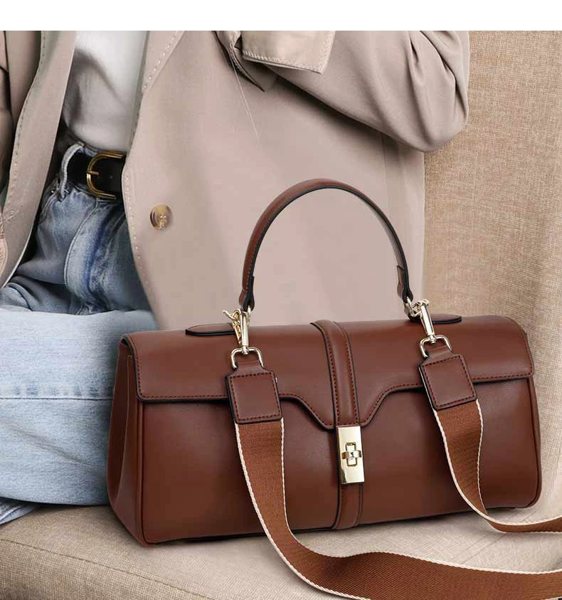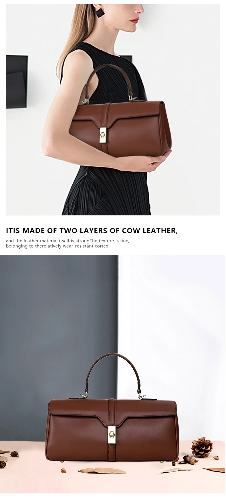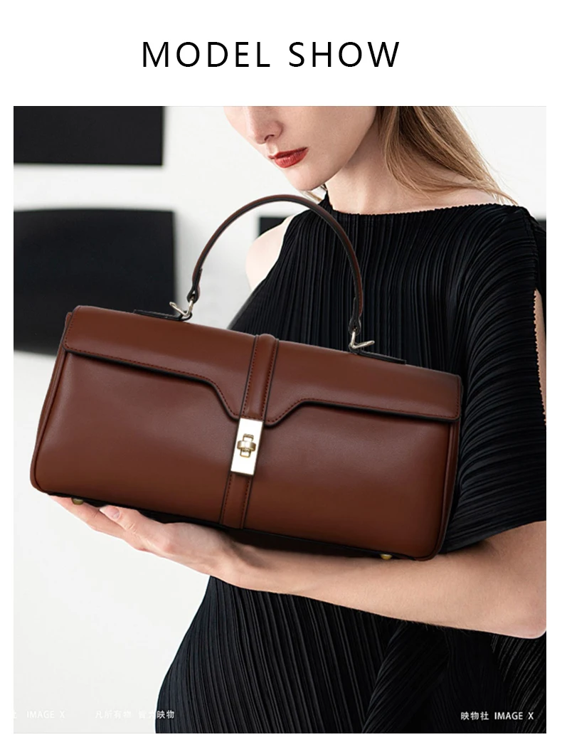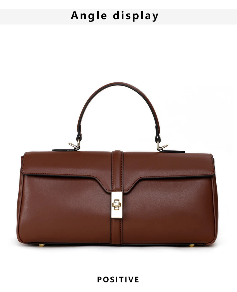 Light Luxury Cowhide Women's Handbag Large Capacity Brown Casual Versatile One Shoulder Crossbody Stick Bag
