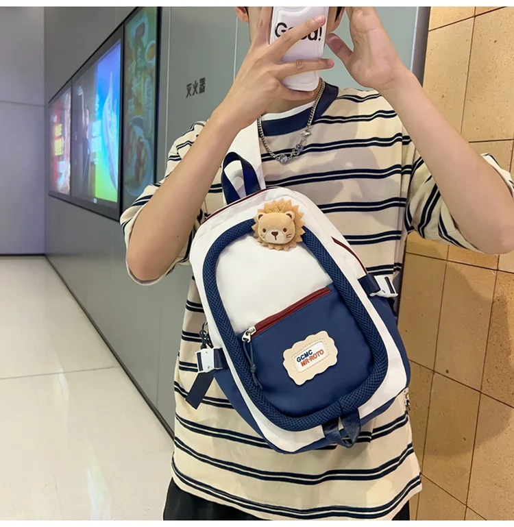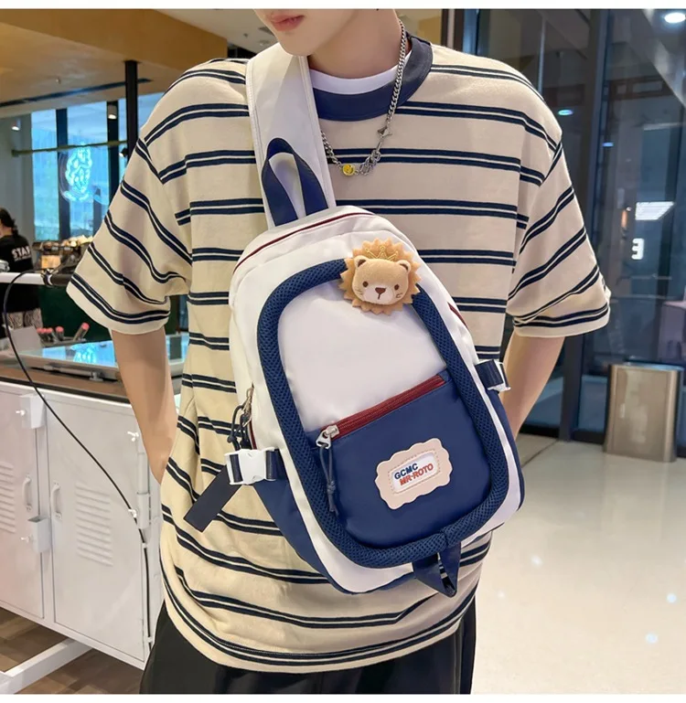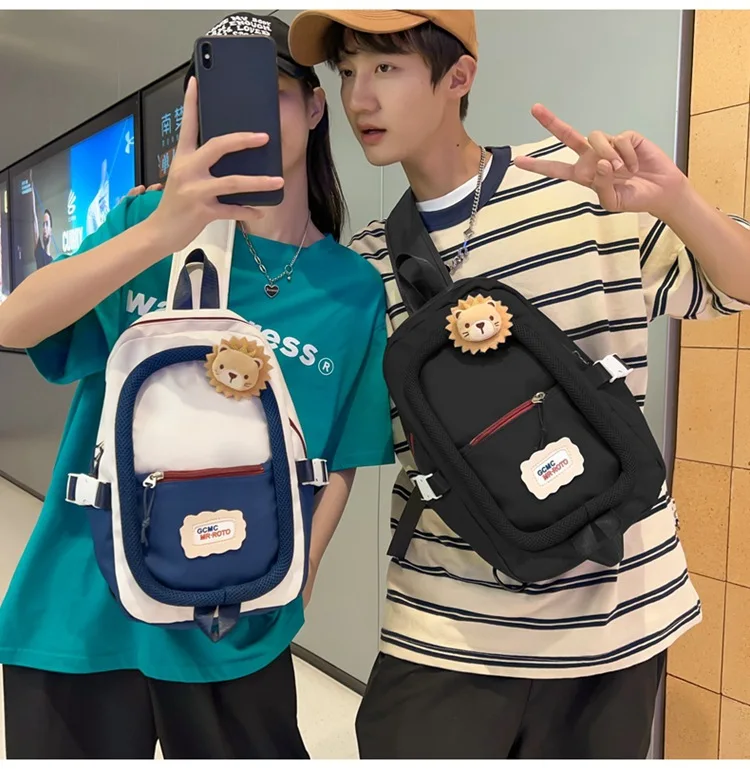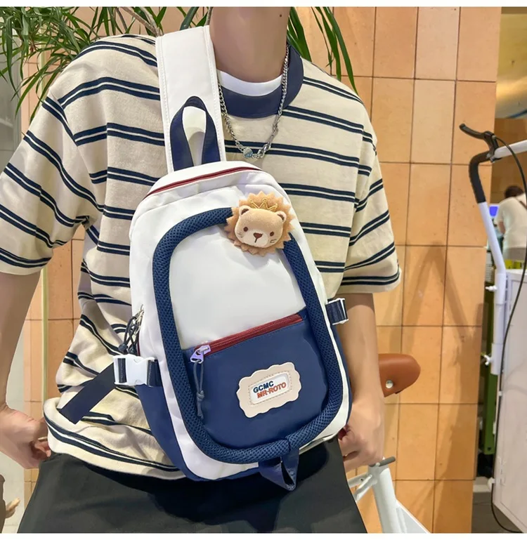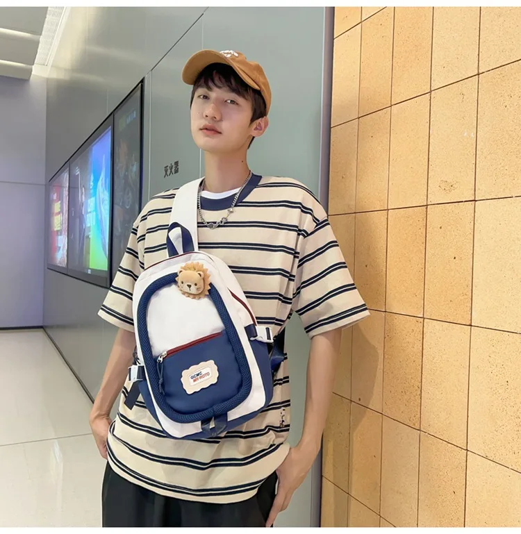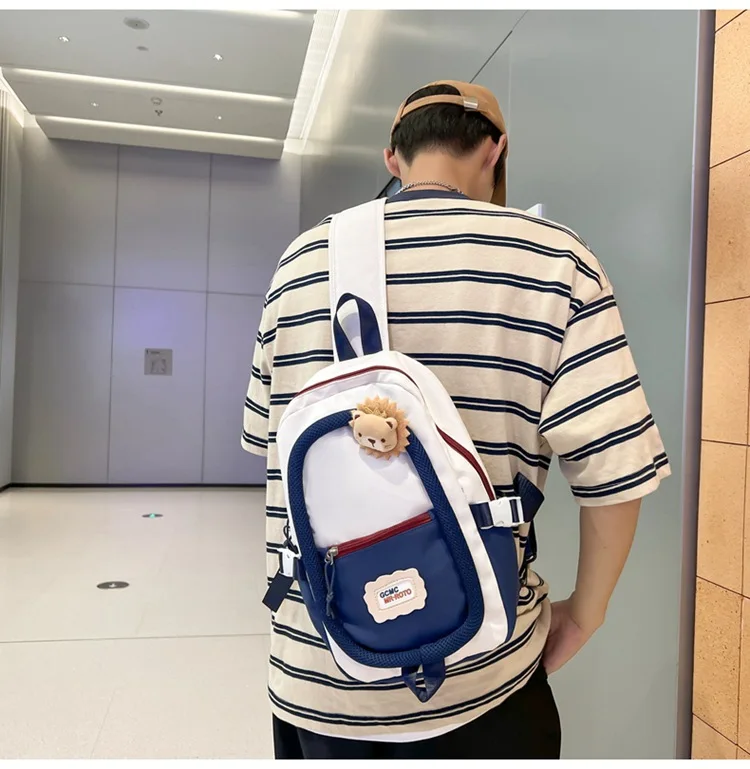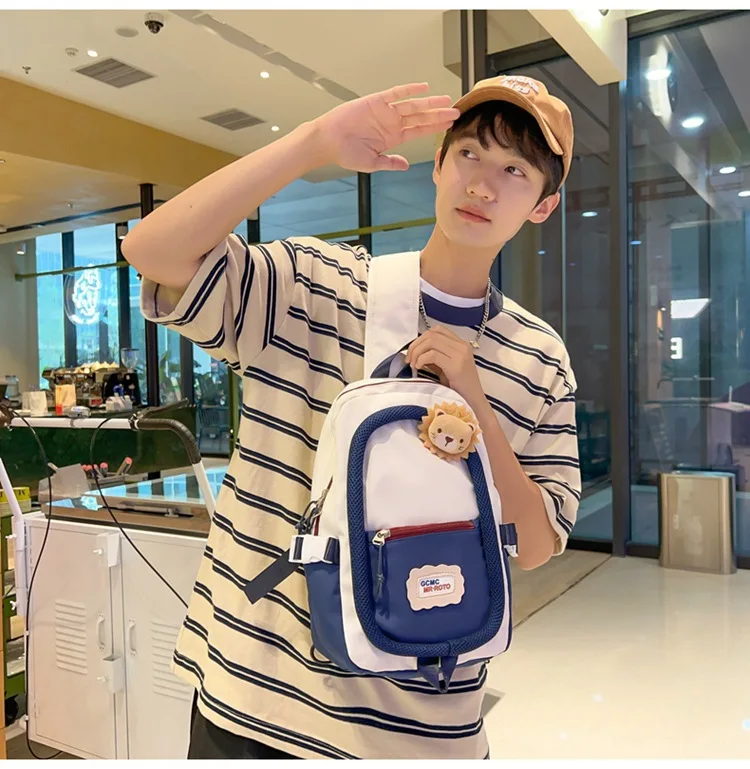 Instagram contrasting color patchwork unisex chest bag casual large capacity student backpack Ruiying sports chest crossbody bag