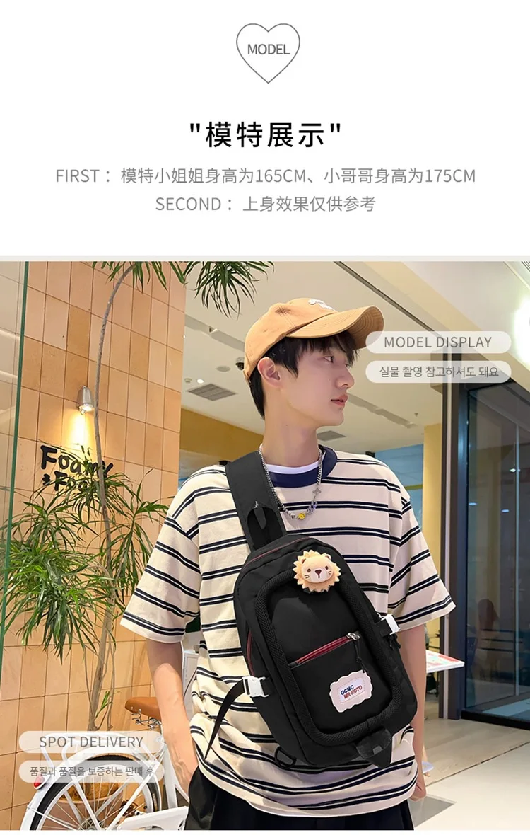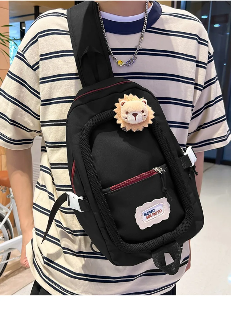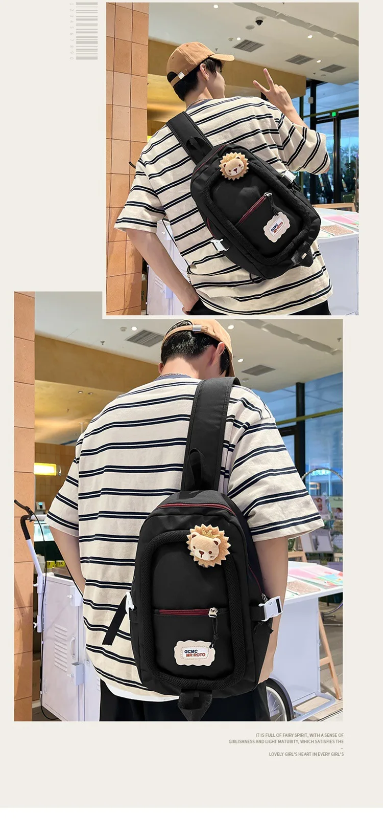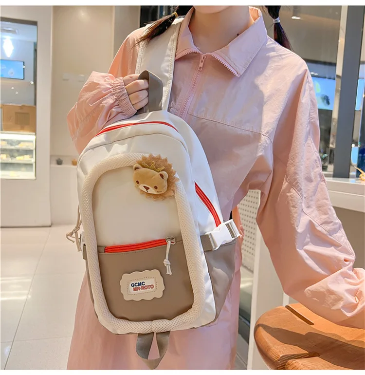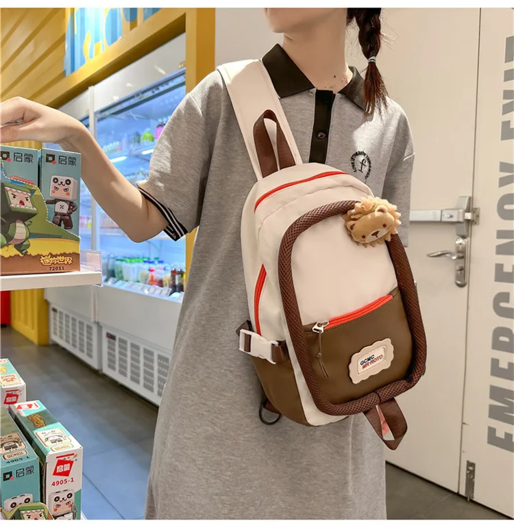 Instagram contrasting color patchwork unisex chest bag casual large capacity student backpack Ruiying sports chest crossbody bag