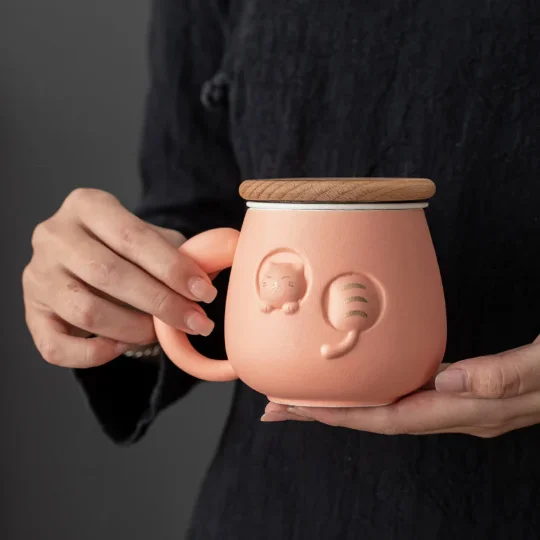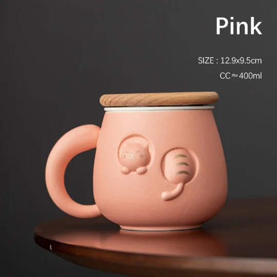 Lovely Cat Ceramic Tea Cup with Infuser 400ml