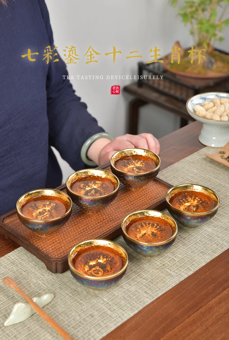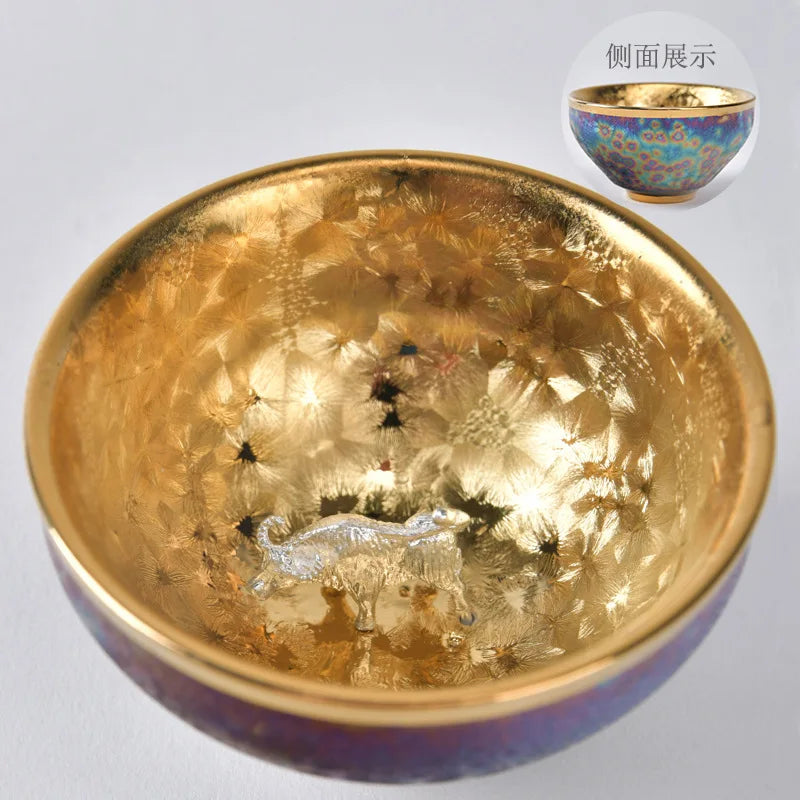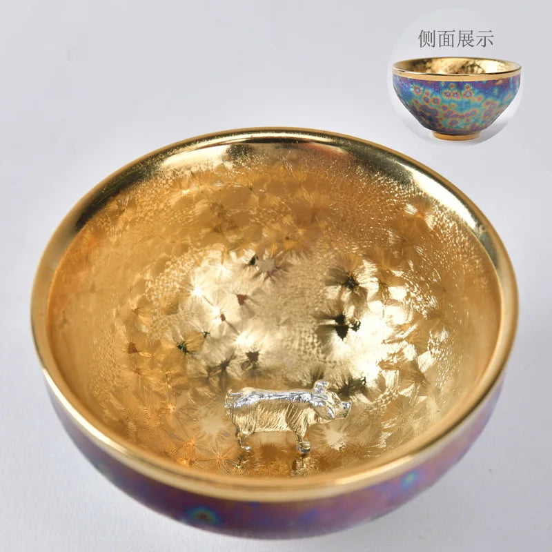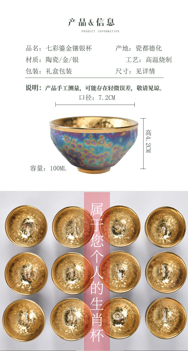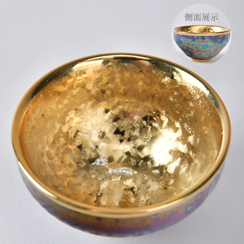 Luxurious gold-plated silver inset tea set single cup Kung fu tea set Zodiac master cup ceramic kiln cup kitchen restaurant bar