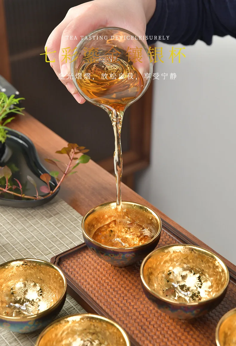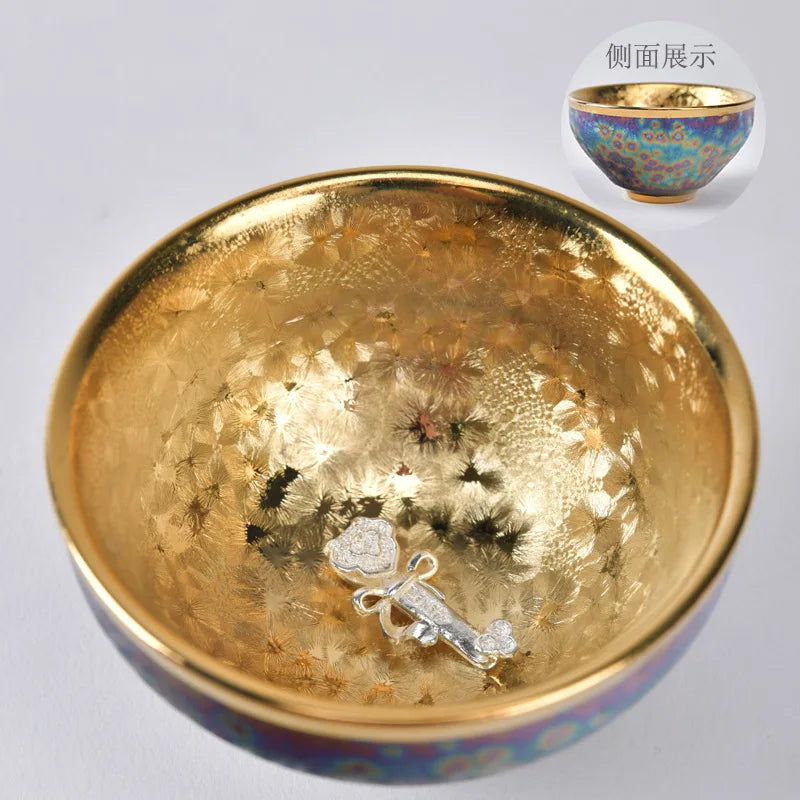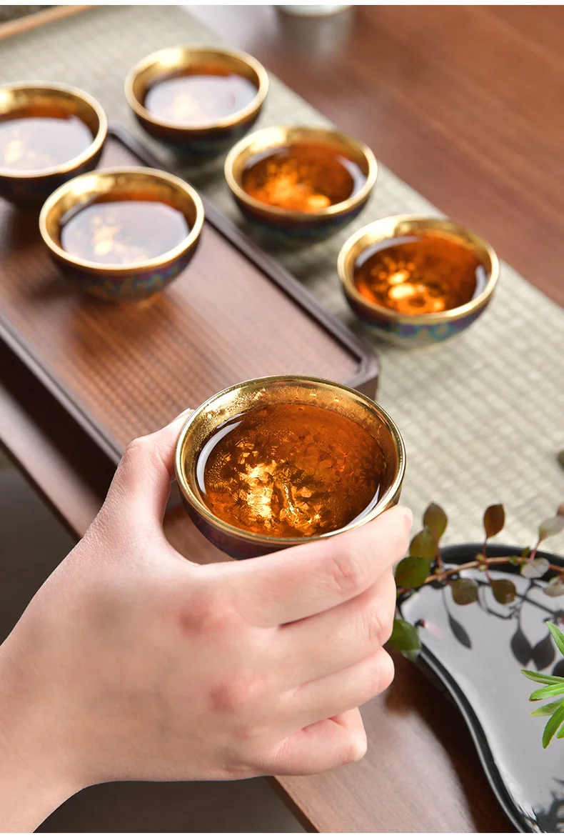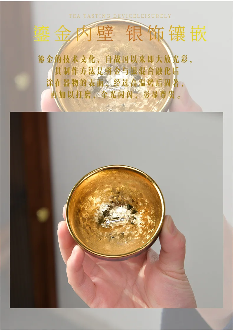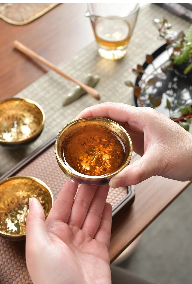 Luxurious gold-plated silver inset tea set single cup Kung fu tea set Zodiac master cup ceramic kiln cup kitchen restaurant bar