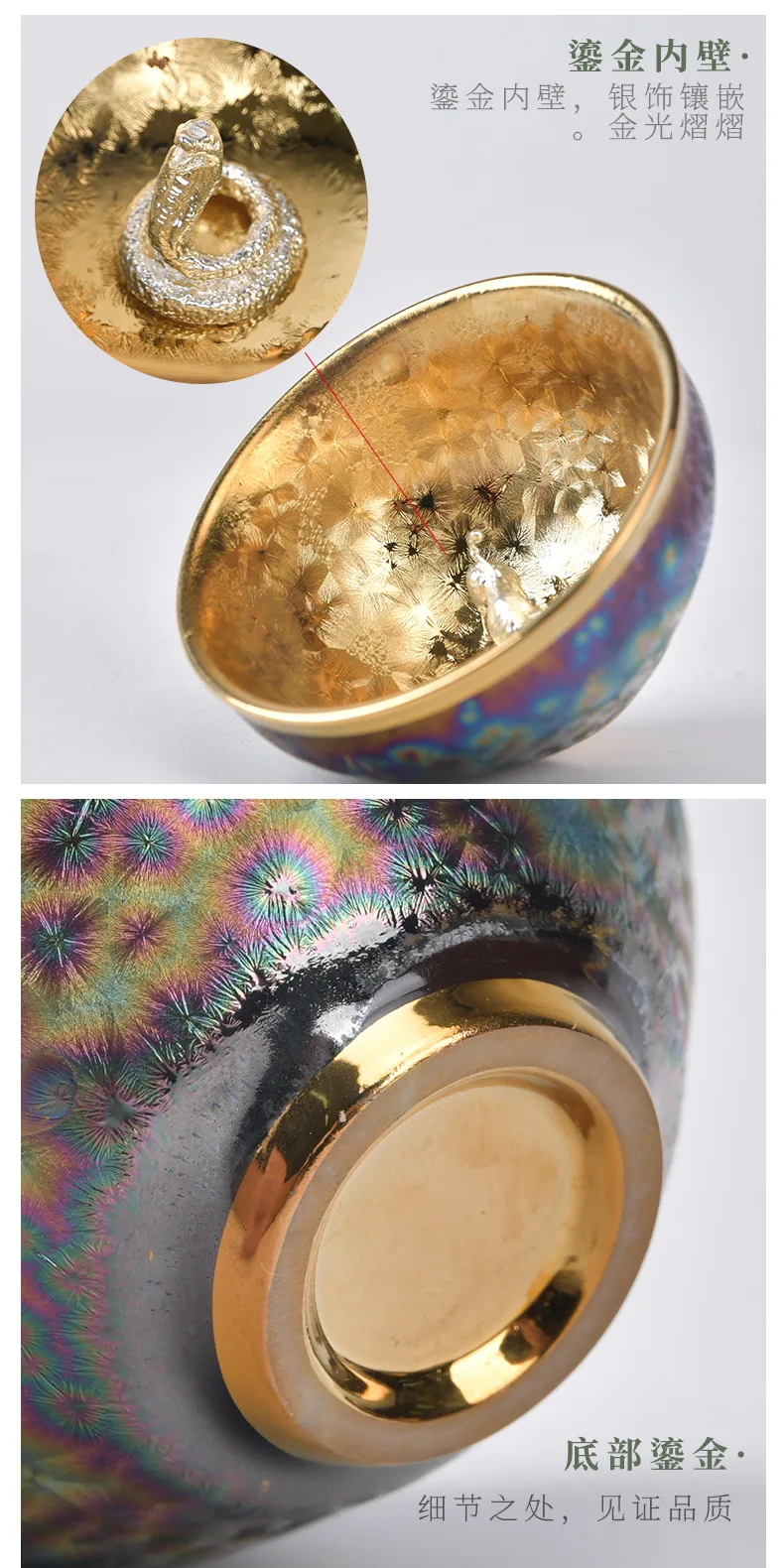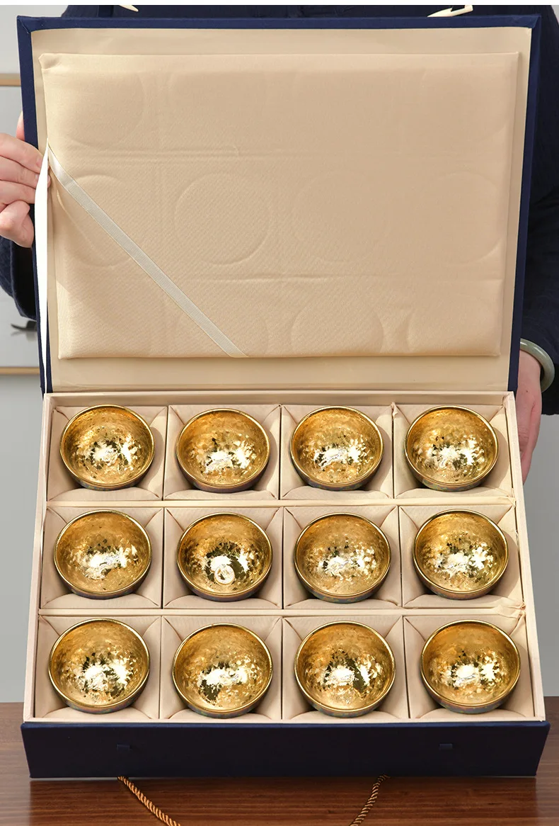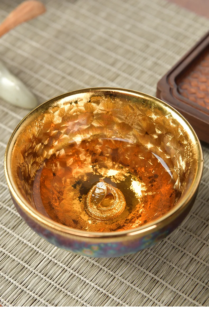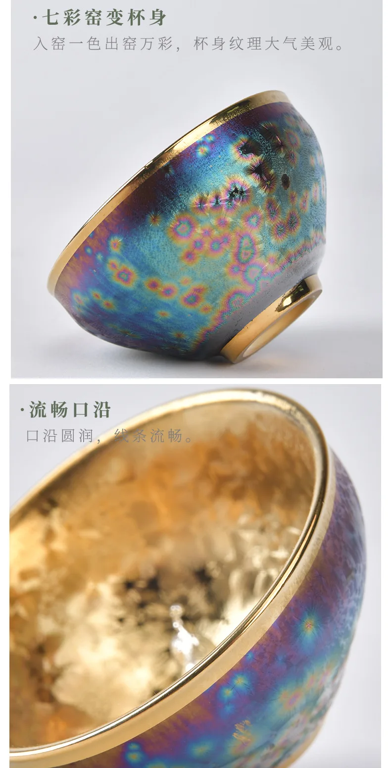 Luxurious gold-plated silver inset tea set single cup Kung fu tea set Zodiac master cup ceramic kiln cup kitchen restaurant bar