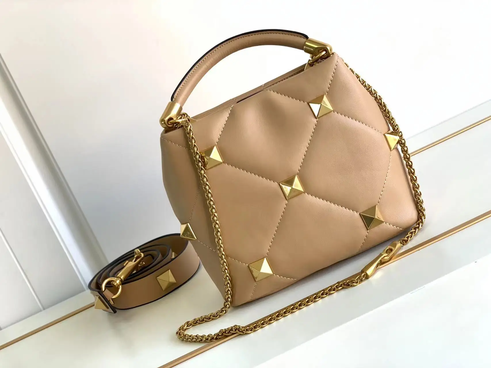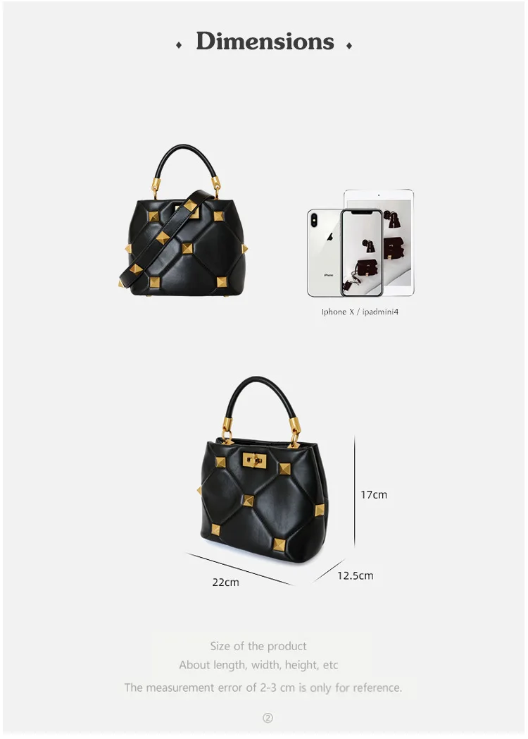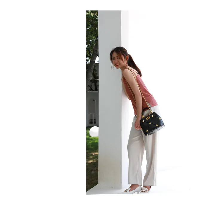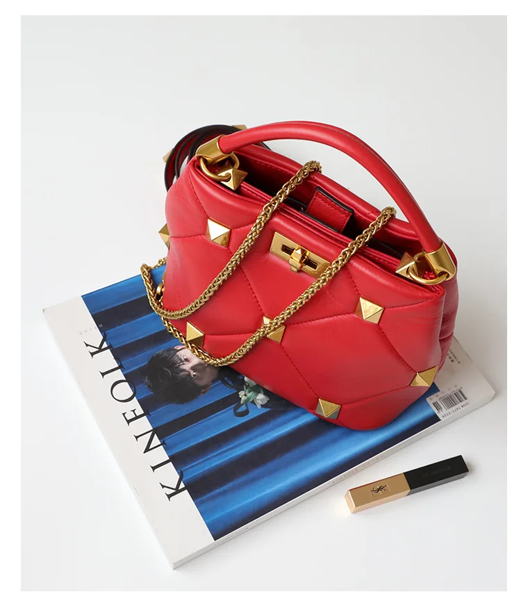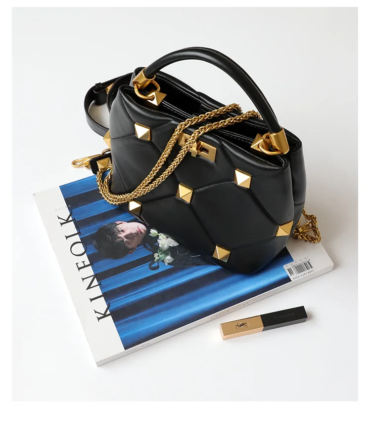 Luxury Brand Designer Bucket Bag Large Rivet Rhombus One Shoulder Messenger Small Square Bag Chain Handbag Woman's Tote Bag