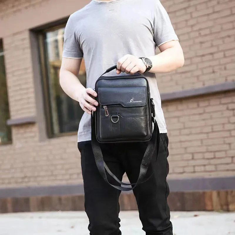 Luxury Brand Men's Shoulder Men PU Leather Flip Crossbody Bag Large-capacity Business and Leisure Three-dimensional Handbag