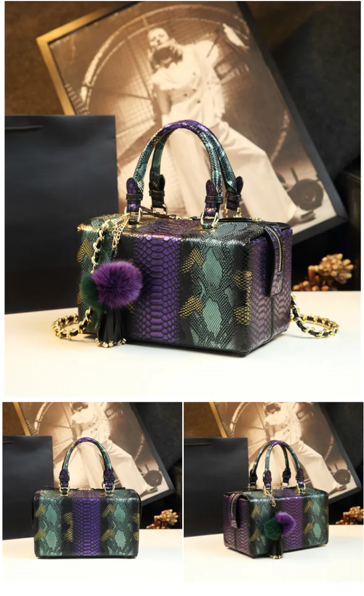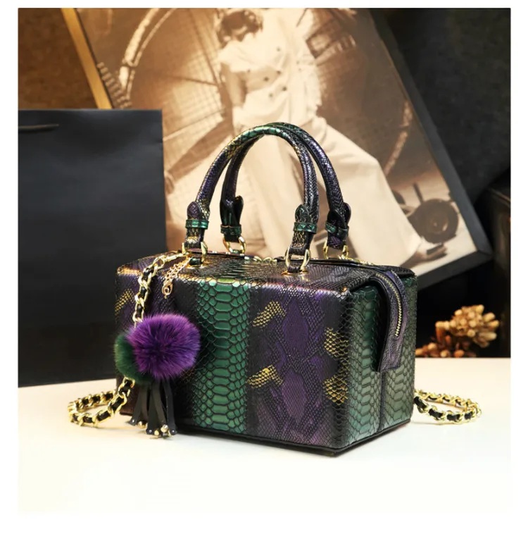 Luxury Fashion Genuine Leather Women handbag mother Serpentine portable shopping bag female charm shoulder square Hard box bags