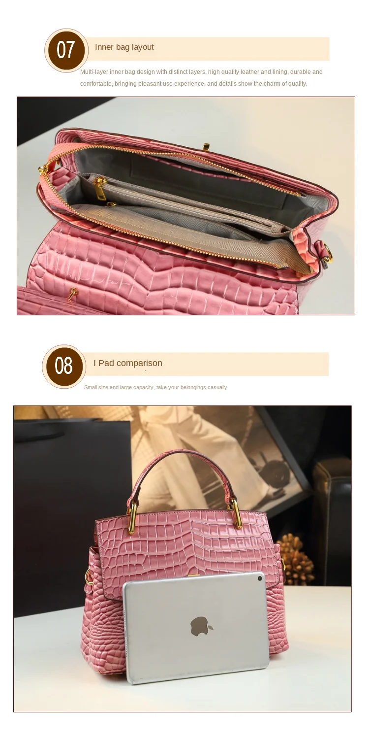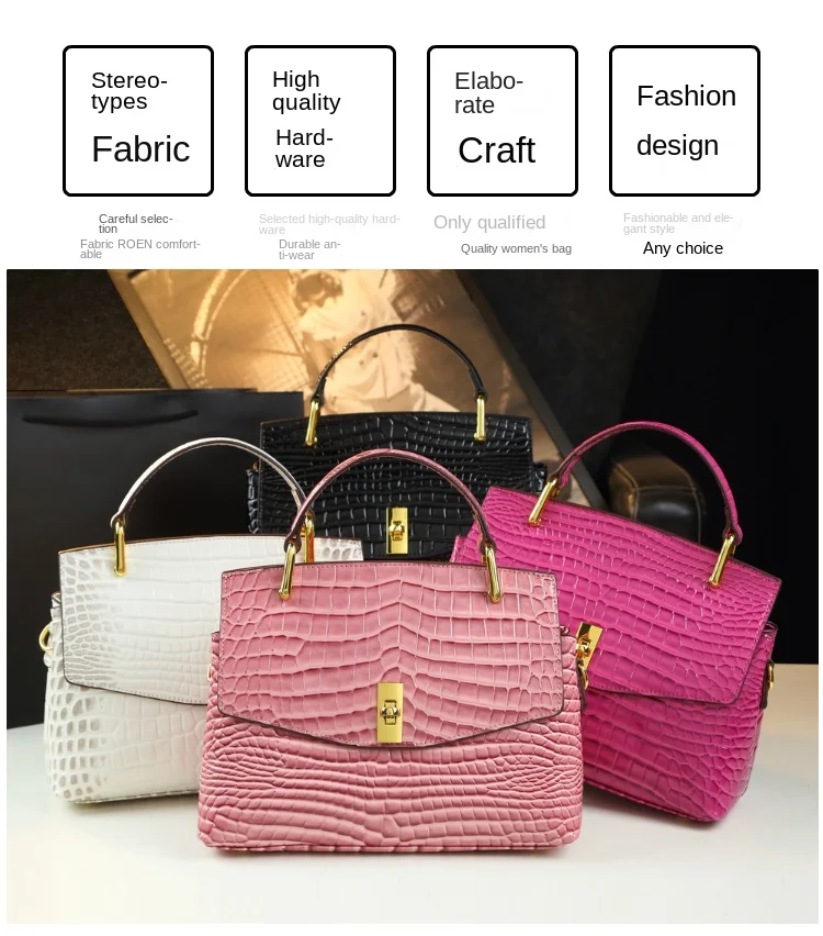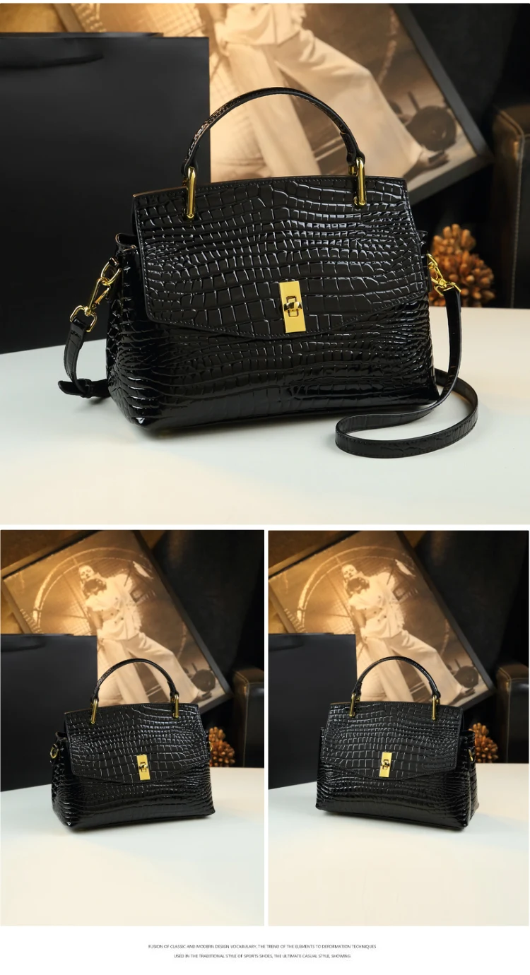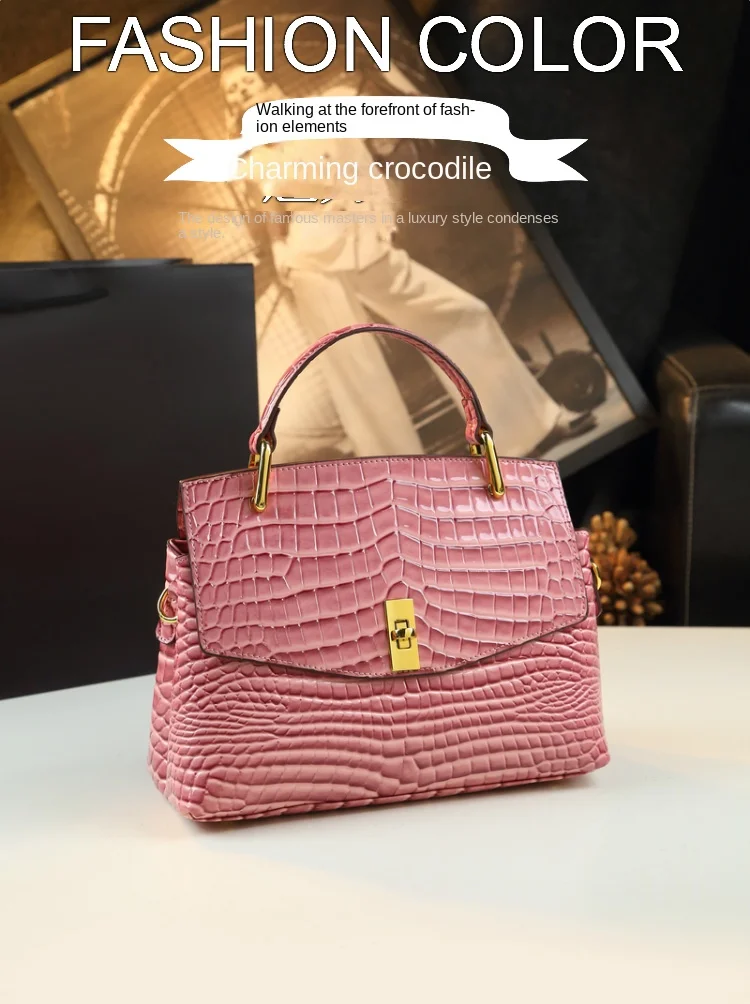 Luxury Fashion Genuine Leather Women's Handbags 2023 New Lady Portable Shoulder Messenger Bag Crocodile Pattern Top Handle Bags