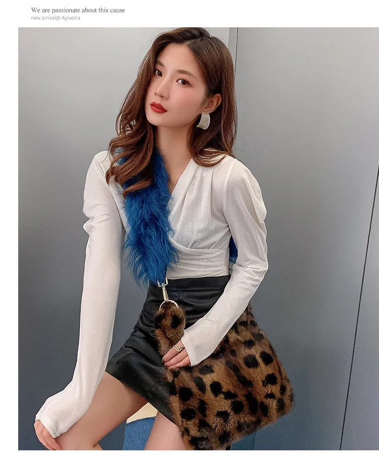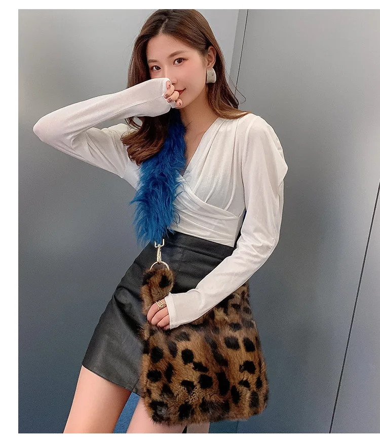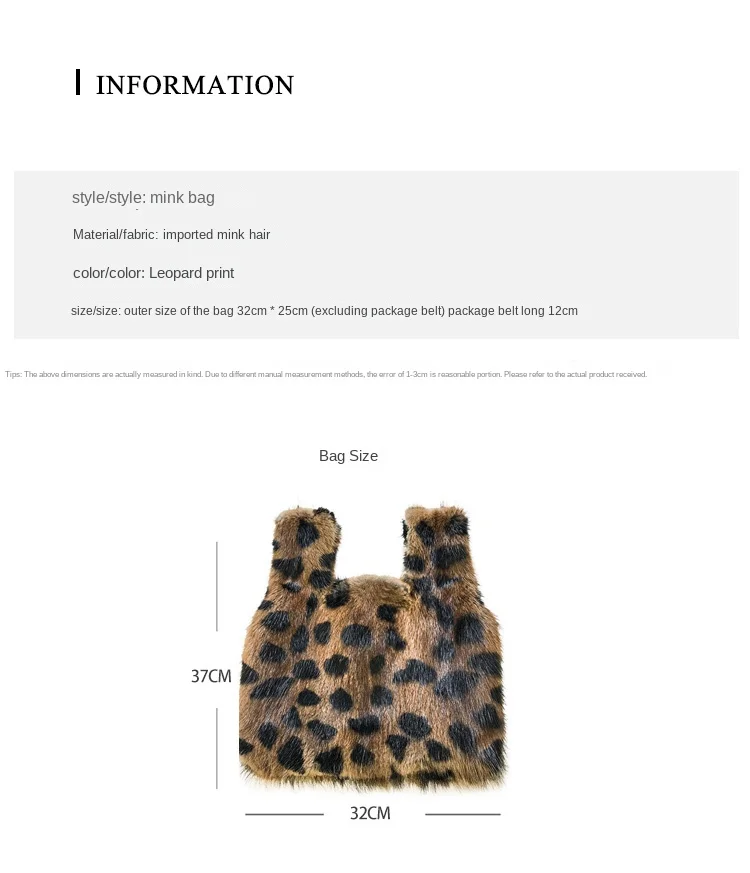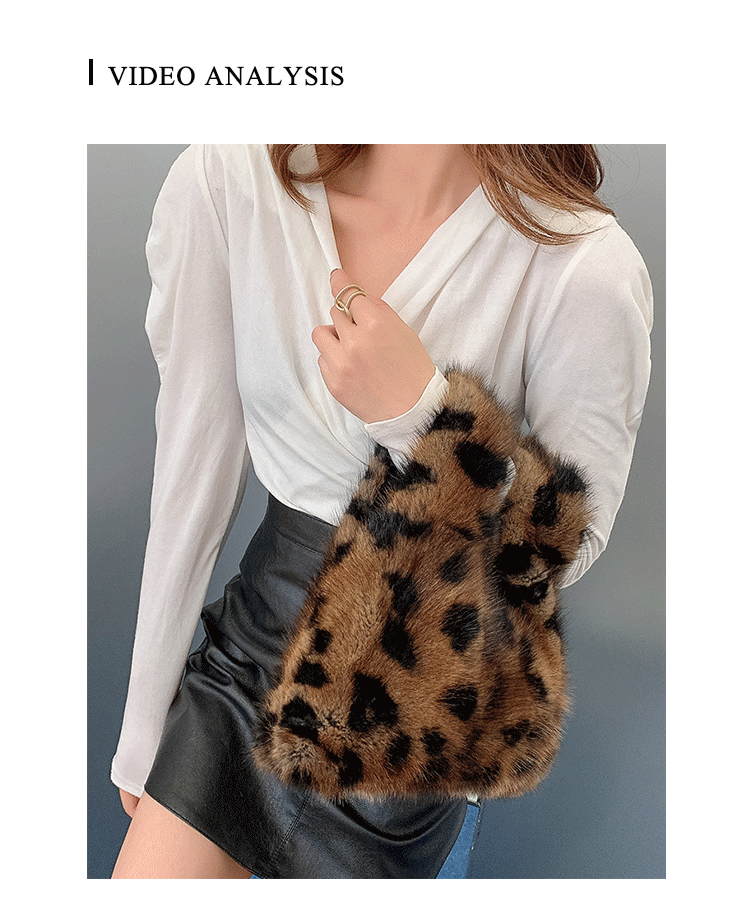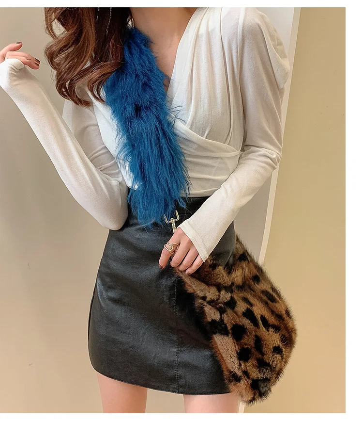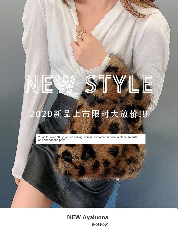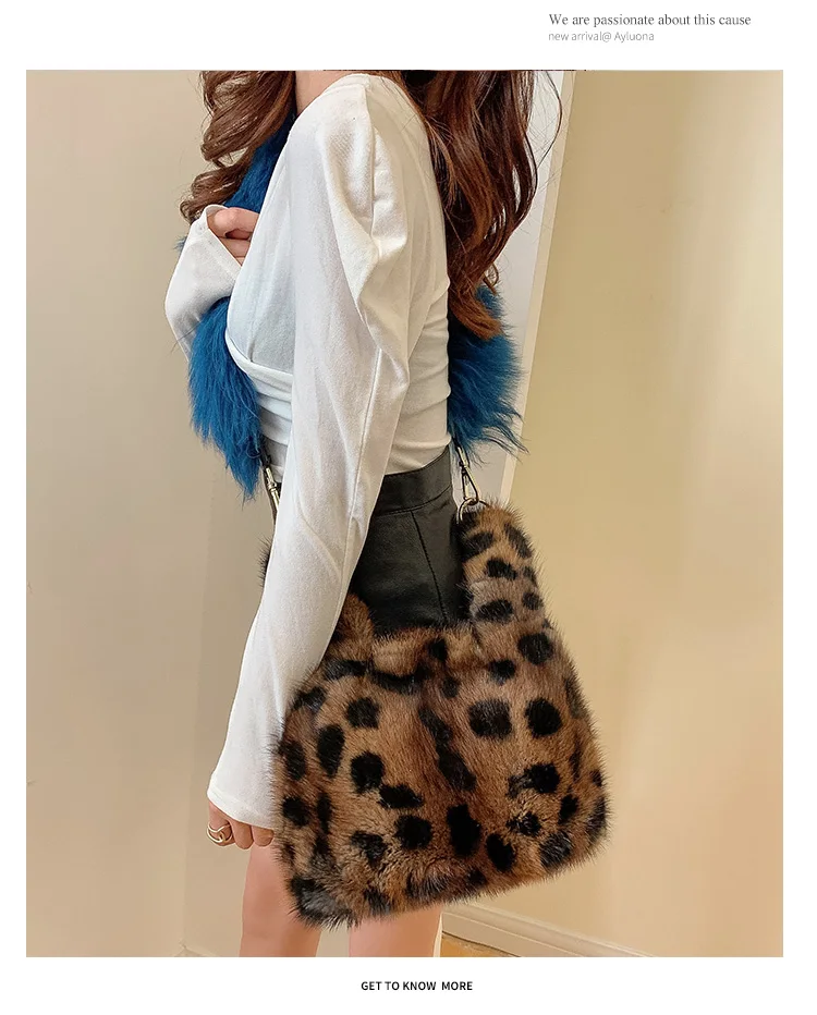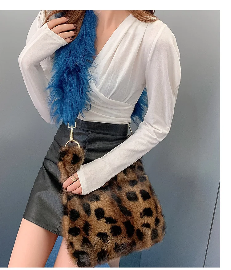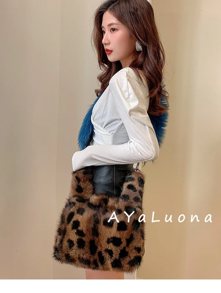 Luxury Fashion Brand Women Bag Chain Leopard Print Fur Small Square Bag Handbag Real Mink Fur Shoulder Crossbody Bags
