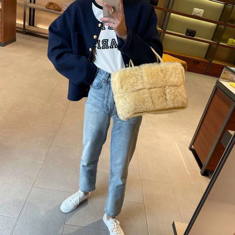 Luxury Faux Fur Tote New Autumn Winter Shoulder Bag Designer Fashion Personality Woven Women Tote Handbags Wool Ladies Shop Bags