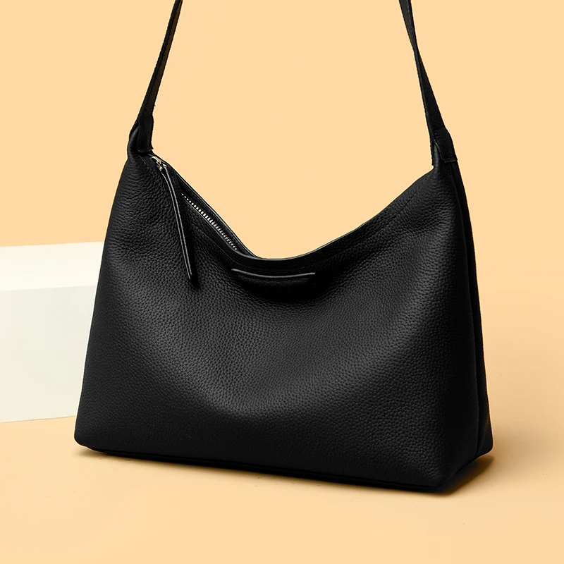 Designer Large Capacity Solid Genuine Leather Shoulder Crossbody Bag For Women 2023 Luxury Cow Leather Female Messenger Tote Sac