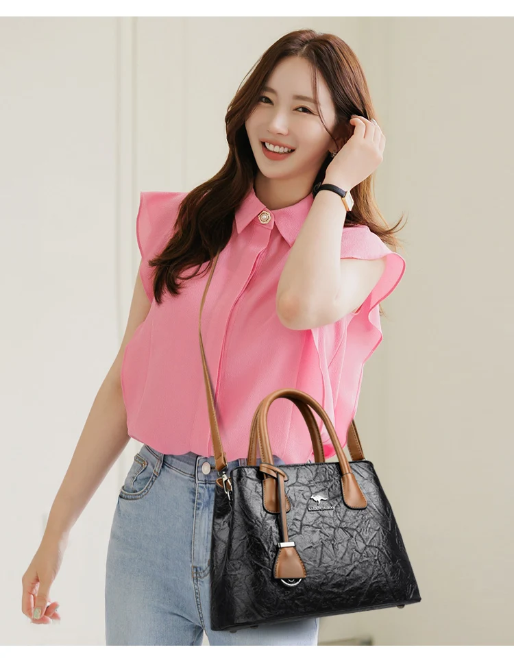 Women Layers Soft Leather Handbags Luxury Designer Shoulder Crossbody Sac Ladies Large Capacity Shopper Branded Messenger Tote