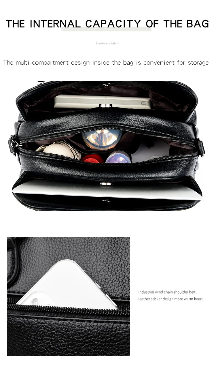 Luxury Women’s Three-Layer Large Capacity Handbag Leather Casual Multifunctional Shoulder Bag Fashionable Versatile Bag