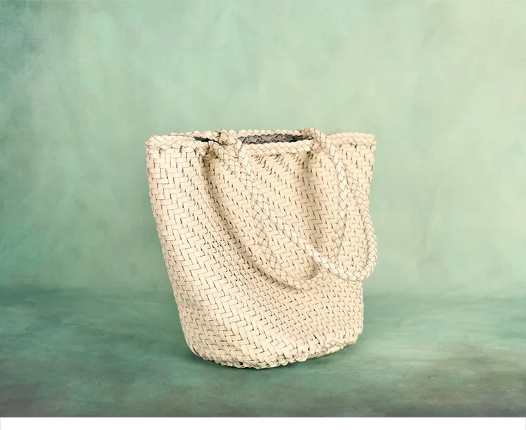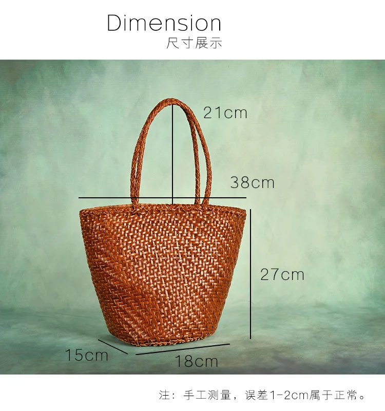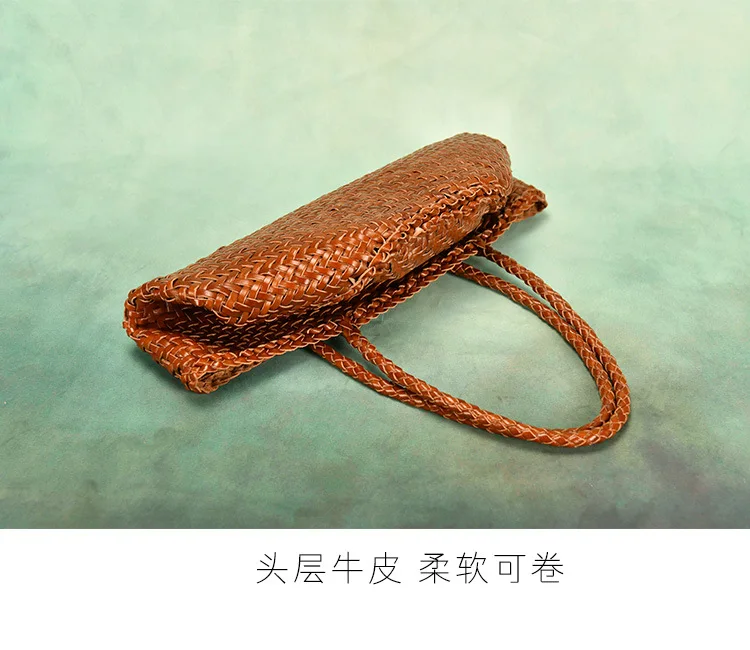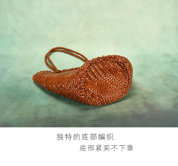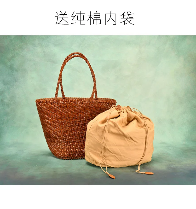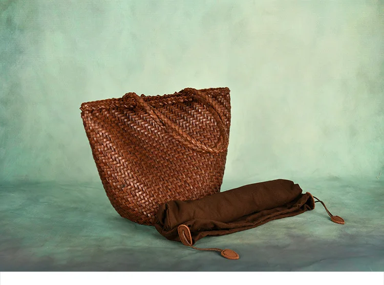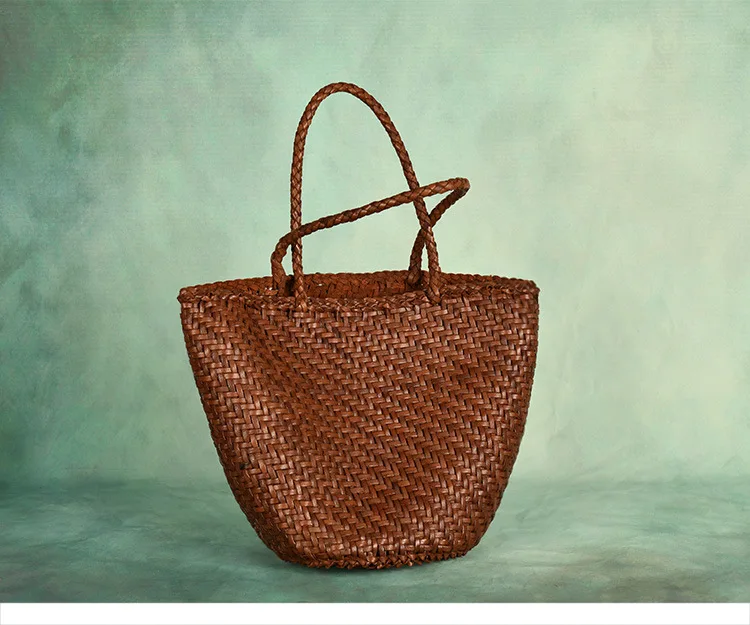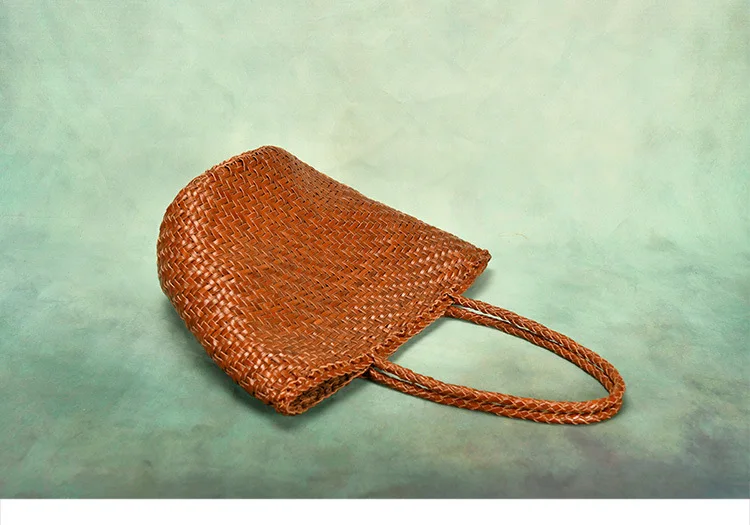 Made Braided bag genuine leather cowhide hand-woven vegetable basket bag women's shoulder bag retro shopping bag
