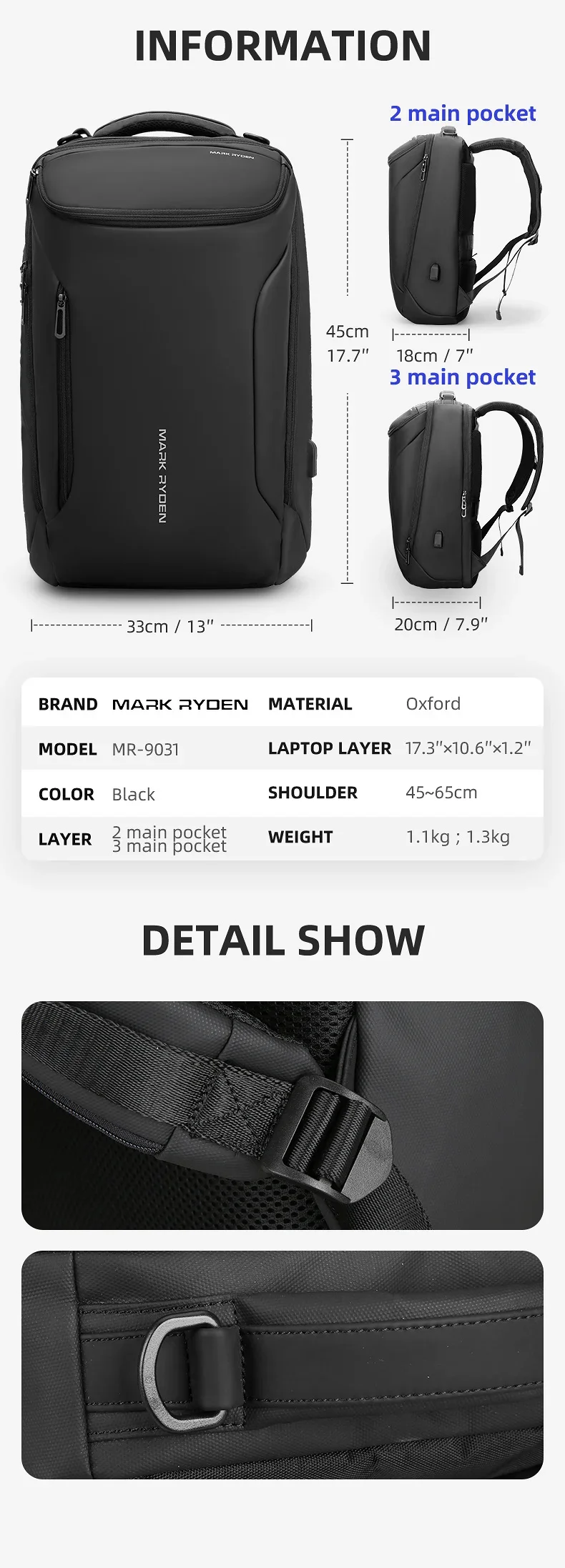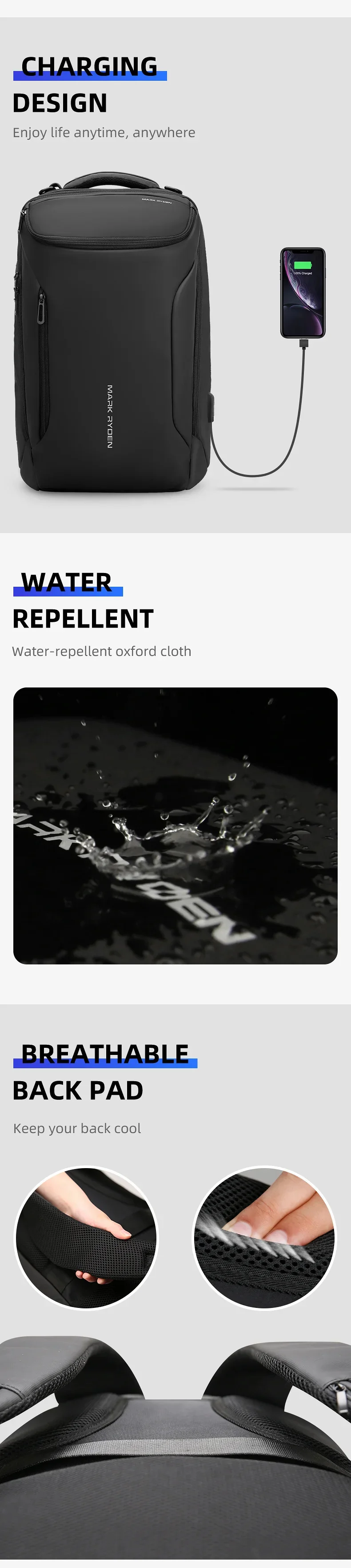 Mark Ryden 2024 New Anti-thief Fashion Men Backpack Multifunctional Waterproof 15.6 inch Laptop Man USB Charging Travel Bag
