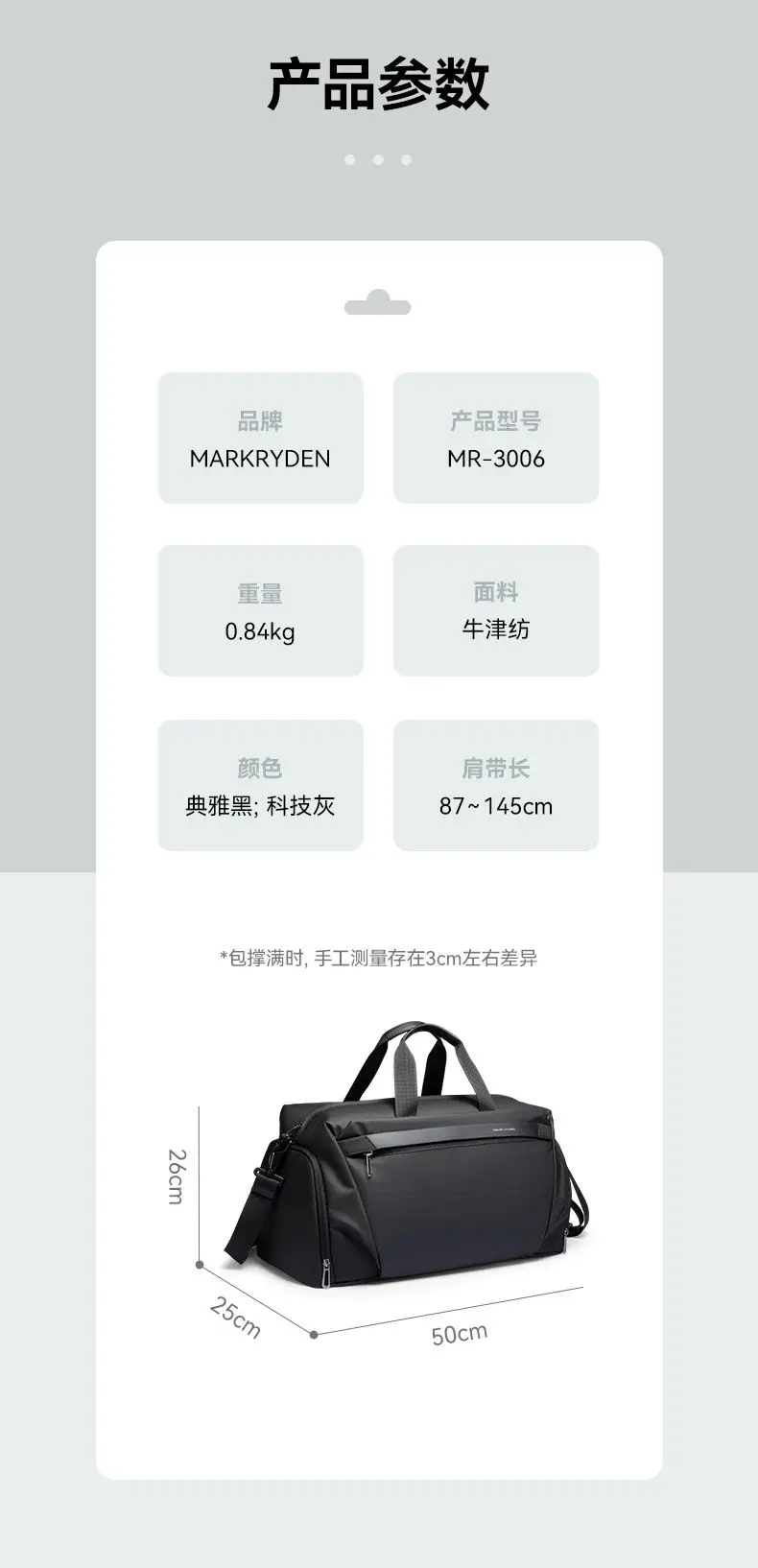 Mark Ryden New High-Capacity Sports Fitness Bag Fashion One Shoulder Cross Body Travel Bag Luggage Bag