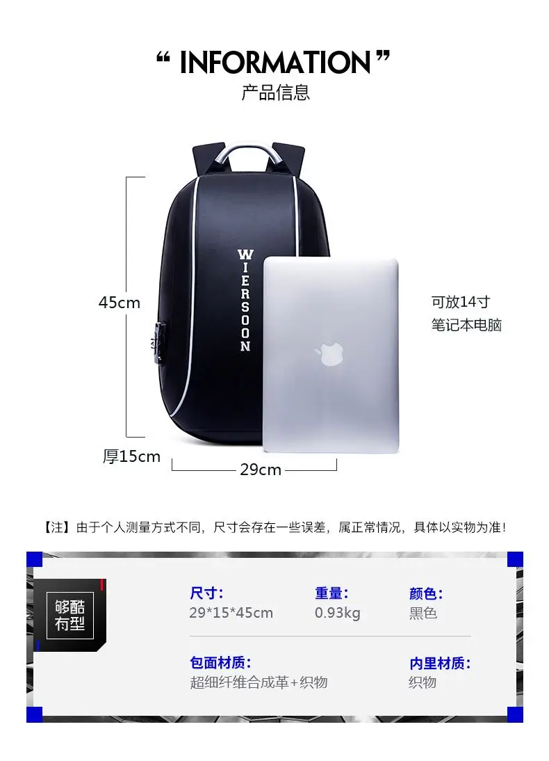 Men Backpack Fashion Waterproof School Travel Bag Backpack USB Business Backpacks Fit For 14 Inch Laptop