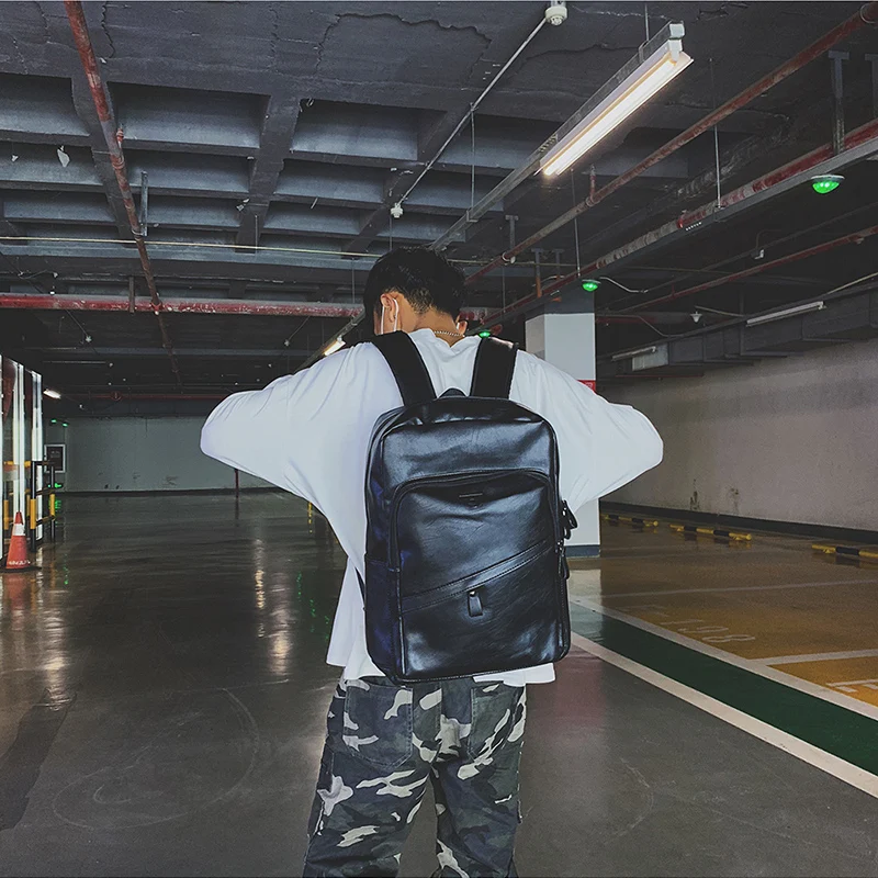 Men Backpack PU Leather Bagpack Large laptop Backpacks Schoolbag
