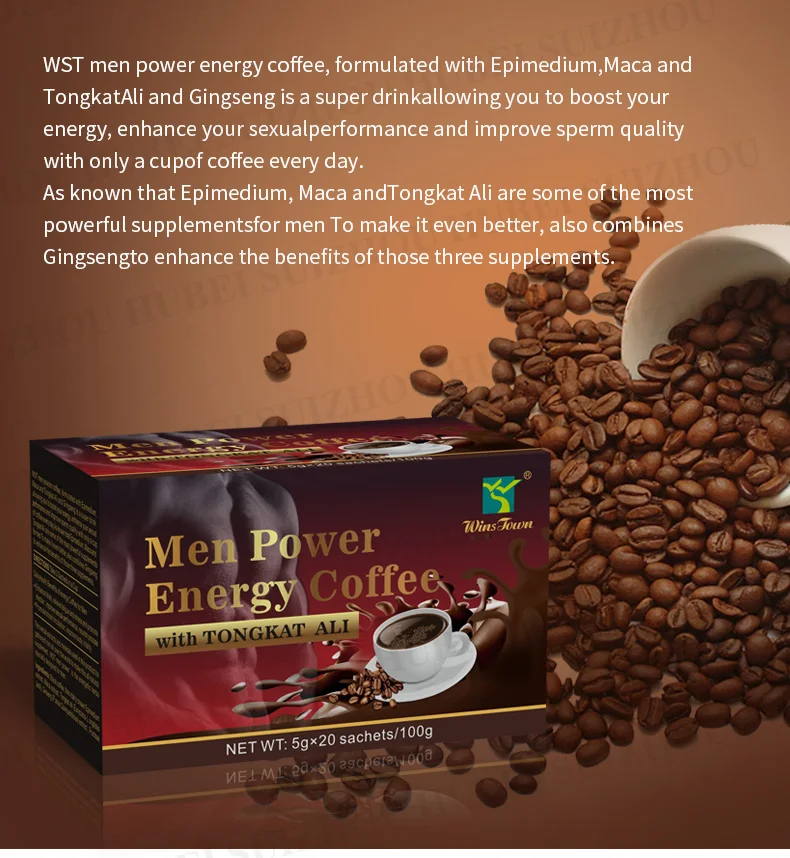 Men Power Energy Coffee Active Instant Black Coffee Maka Ginseng Coffee 5g*20bag
