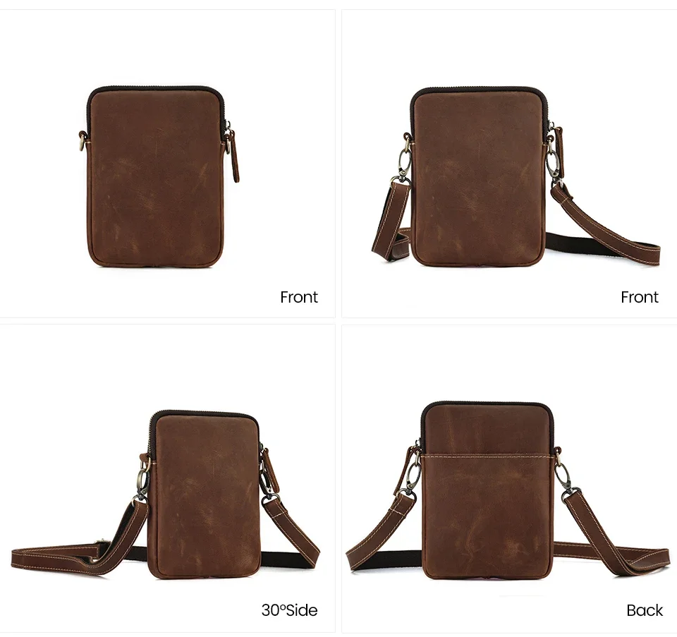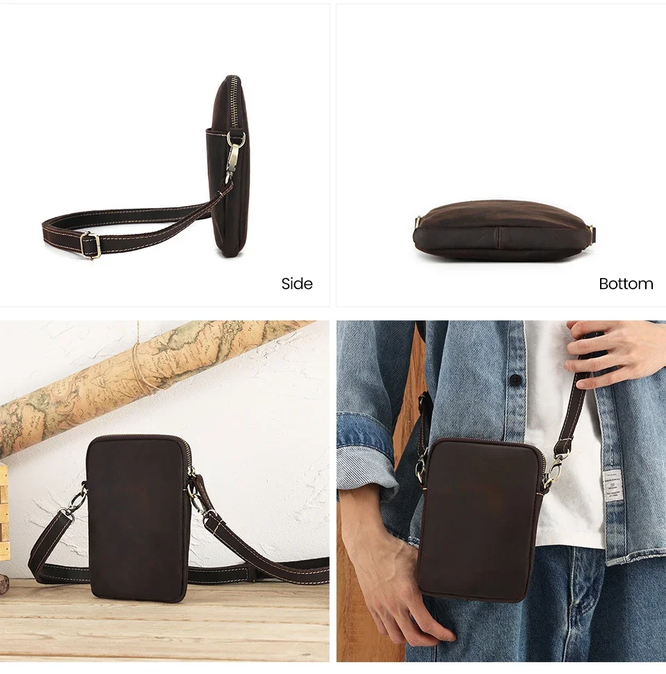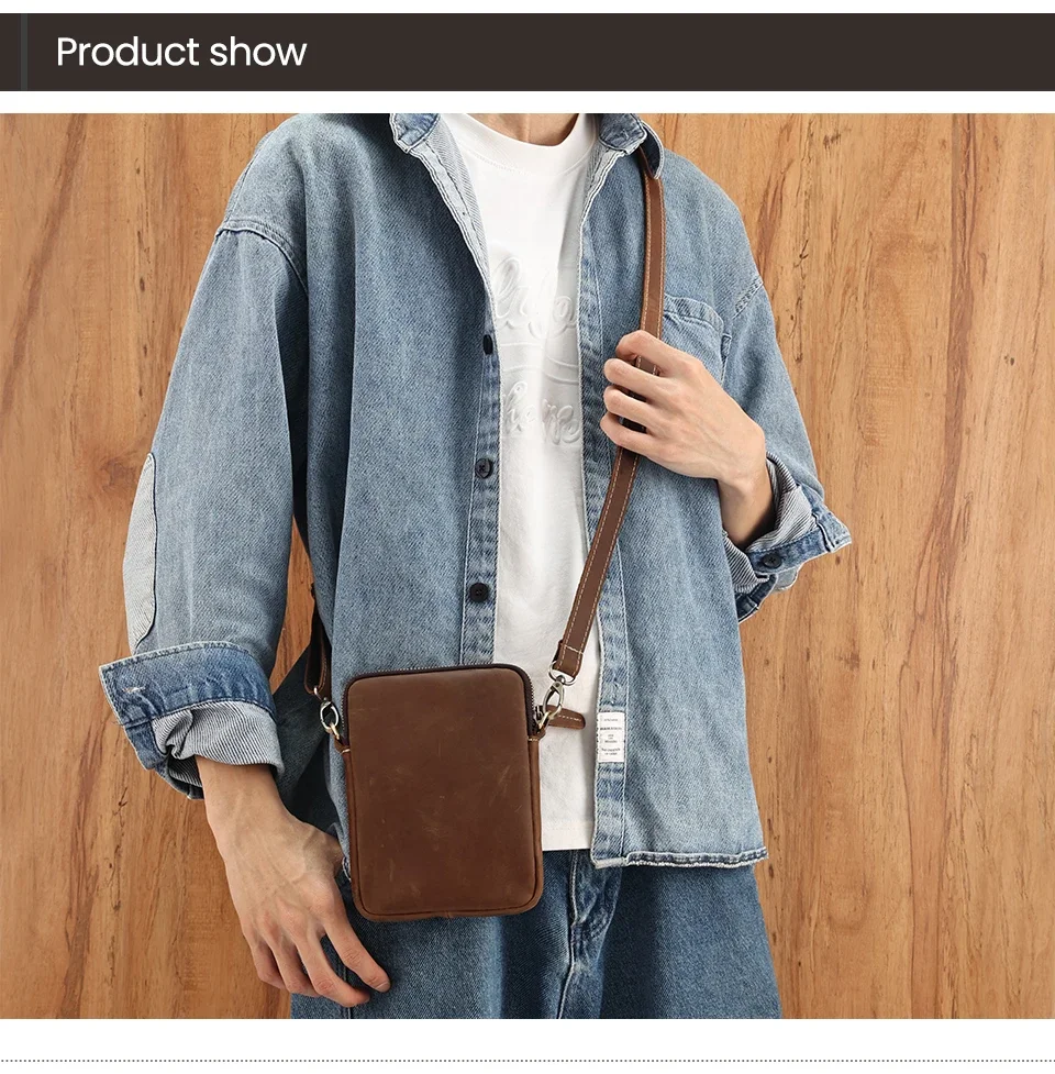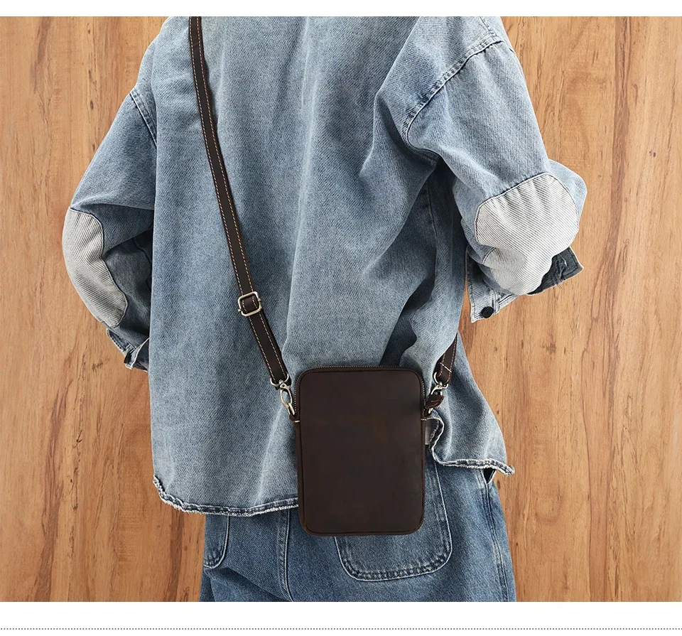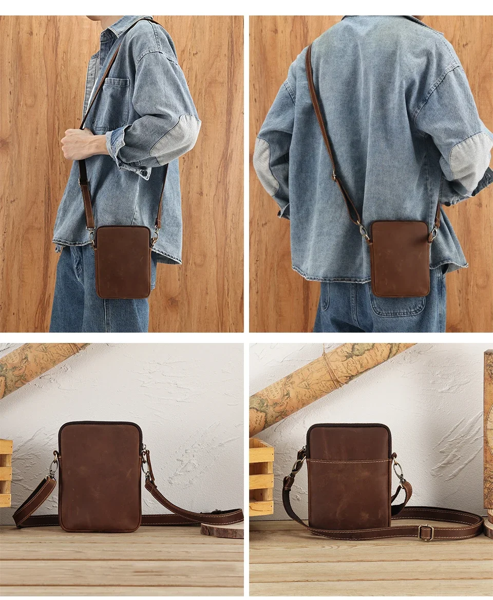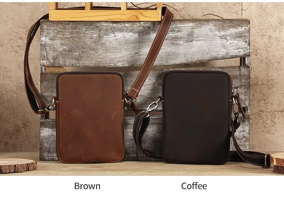 Men Shoulder Bag Crazy Horse Leather Retro Travel Messenger Bag Casual Small Cell Phone Man Purse Crossbody Bags