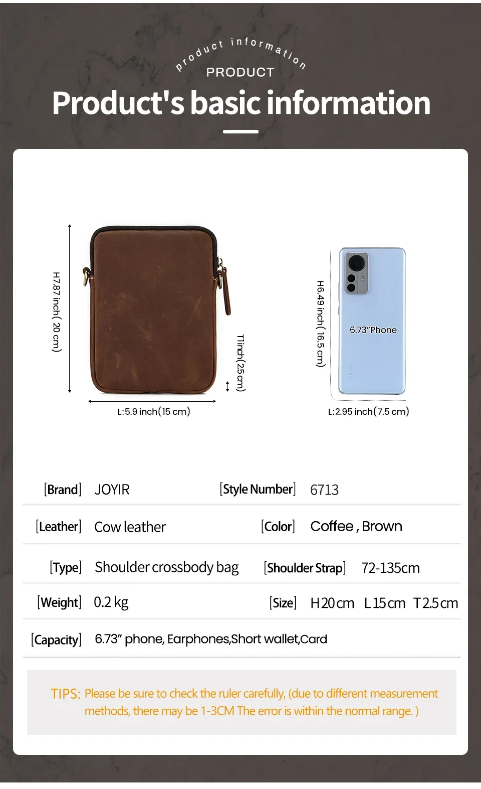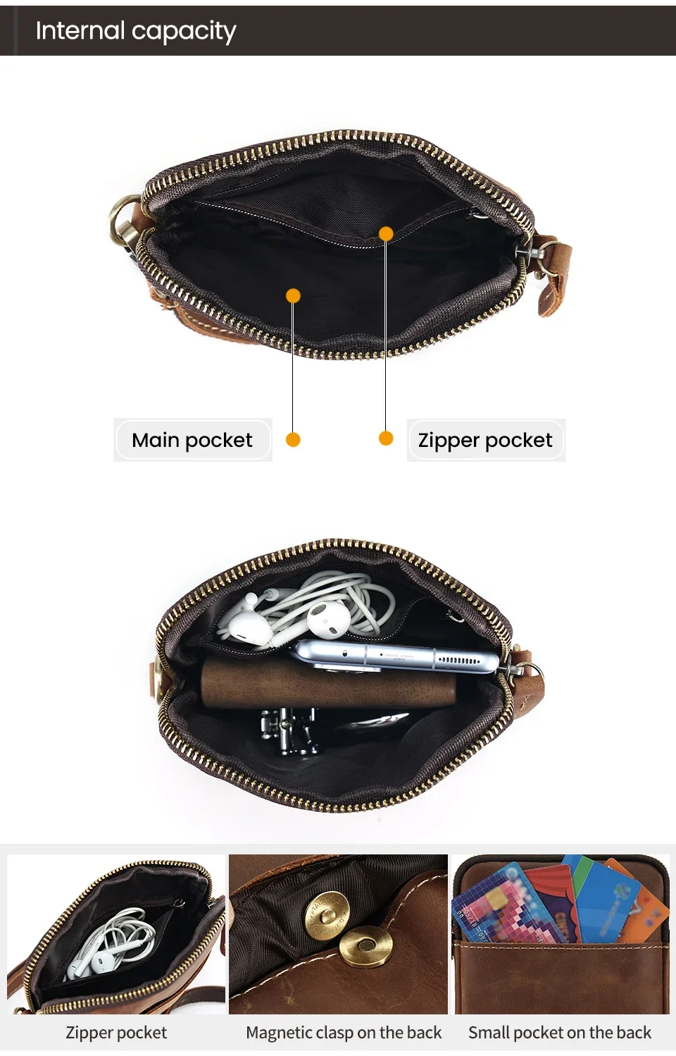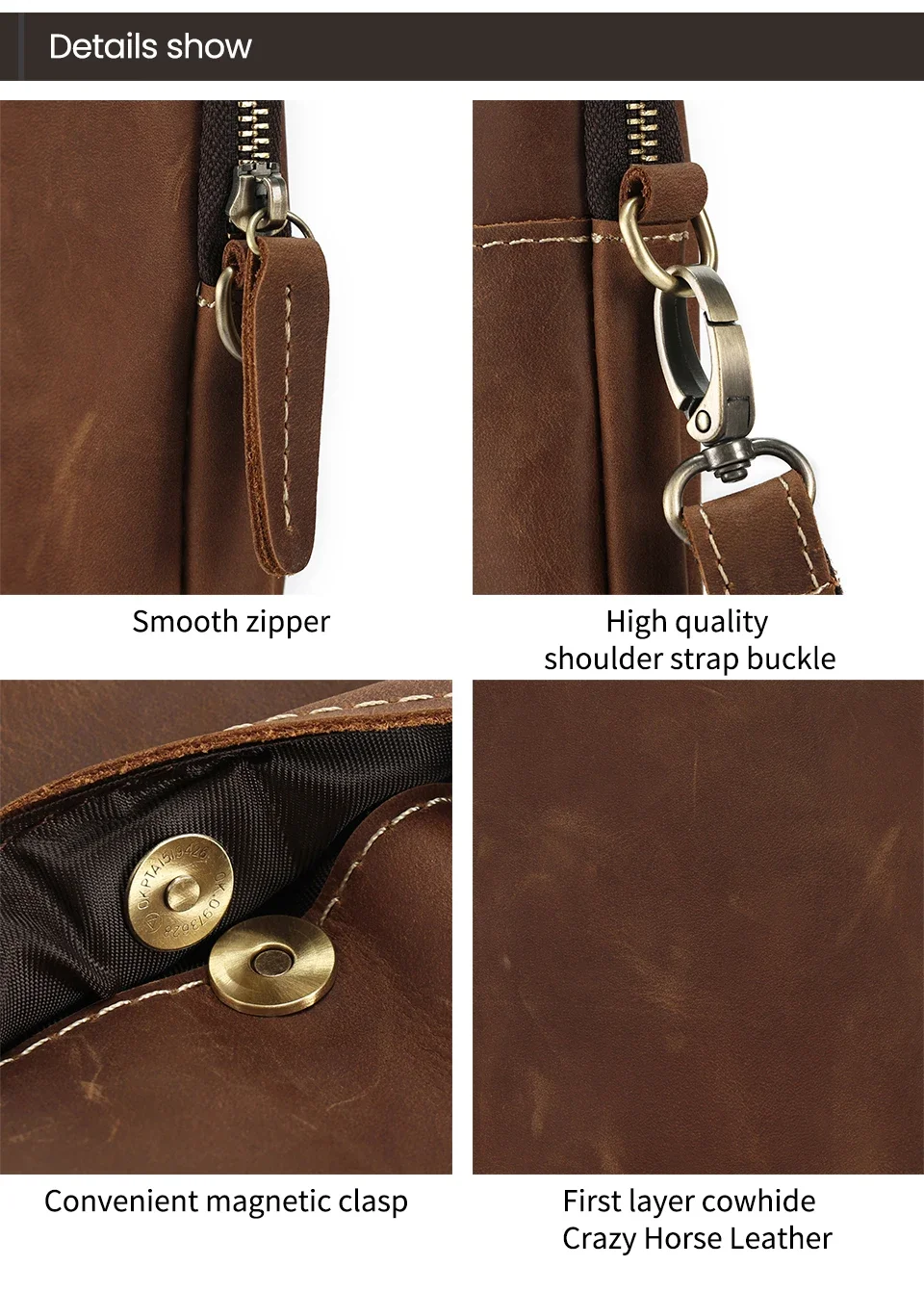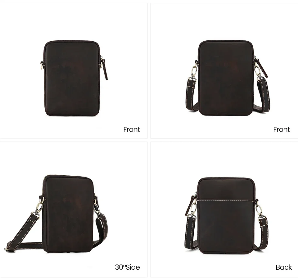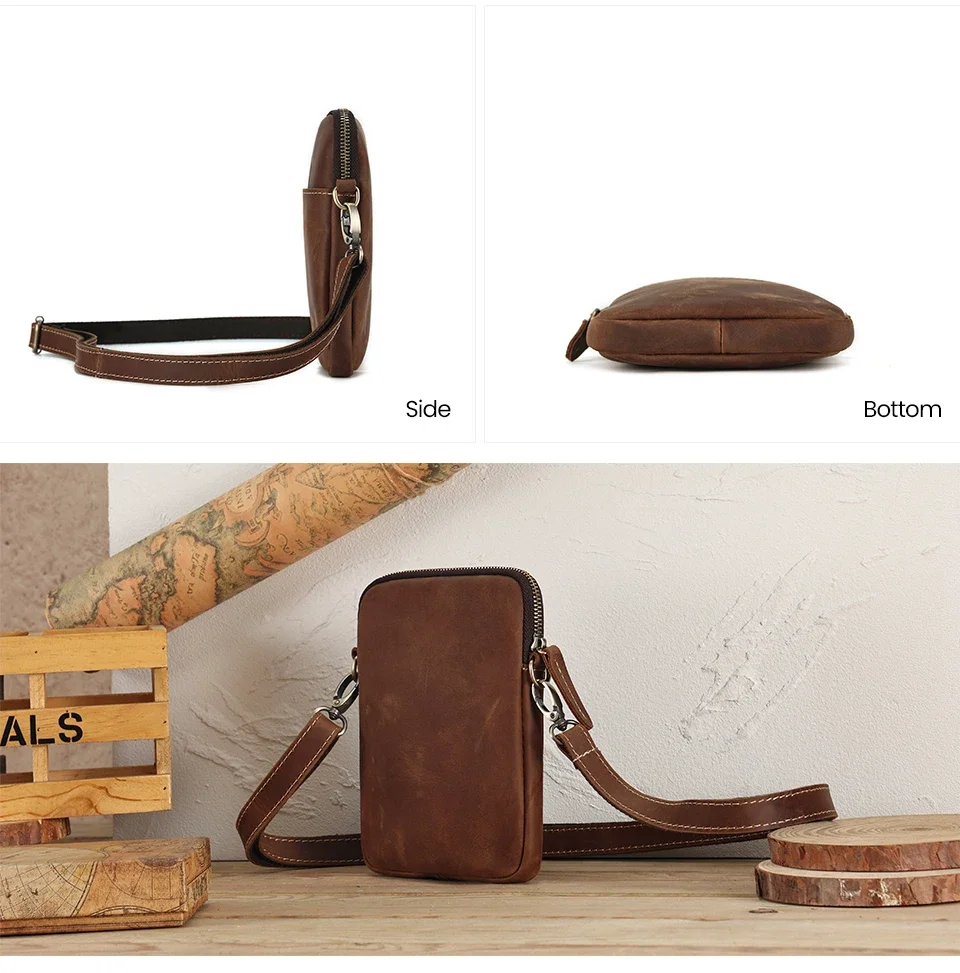 Men Shoulder Bag Crazy Horse Leather Retro Travel Messenger Bag Casual Small Cell Phone Man Purse Crossbody Bags