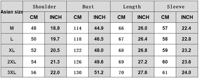 The Item is Asia Size Pls check the size chart carefully 1. Due to manual measurement, please allow 1-3cm tolerance. 2. Color may slightly vary from the image due to different computer screen and light affect. 3. If you are not sure about the size, please tell us your height and weight other information, we can help you choose the right size