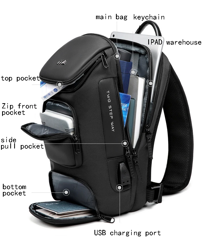 Men USB Shoulder Bag Travel Pack Crossbody Chest Bag Pack Women Female
