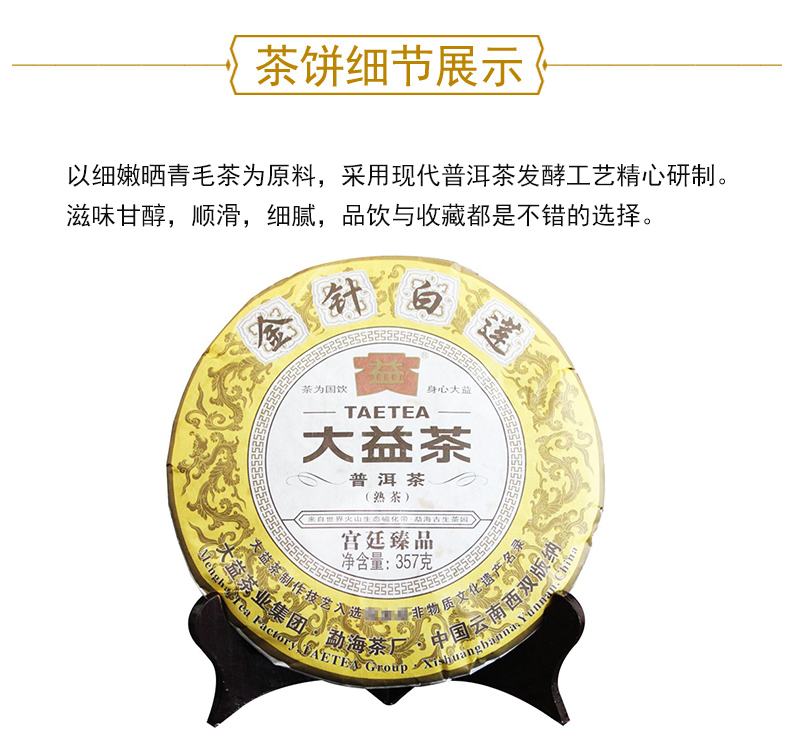 Royal Menghai Dayi Golden Needle White Lotus Puer Pu-erh Ripe Tea 357g