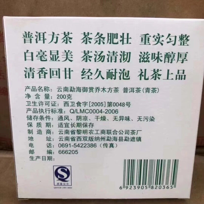 2006 Ba Jiao Ting Royal Reward Arbor Square Tea 200g Pu'er Tea Green Brick 200g