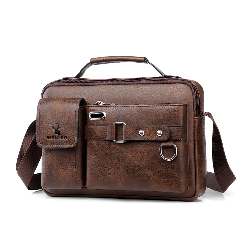 Feature: 1.Material: The shoulder bag for men consists of high quality soft PU leather and polyester lining, embodying exquisite workmanship. PU leather is anti-scratch and waterproof, and makes the texture supple and sturdy.