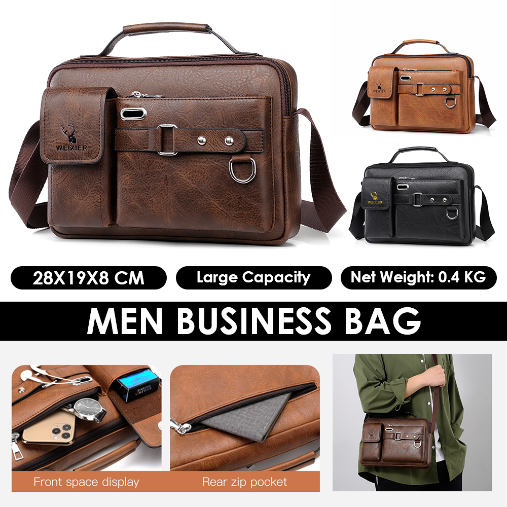 Specification: Type: Men Business Bag Color: Black, Light Brown, Dark Brown (Optional) Material: High quality soft PU leather Net Weight: 0.4 KG Dimensions: Approx. 28x19x8CM / 28.5x19x5.5CM