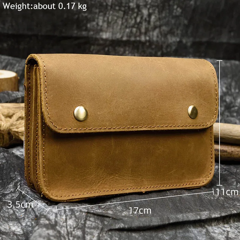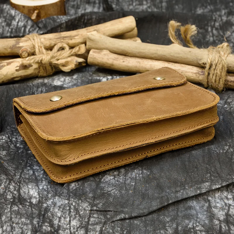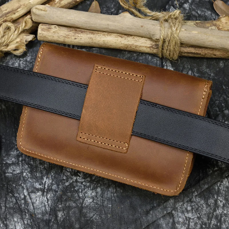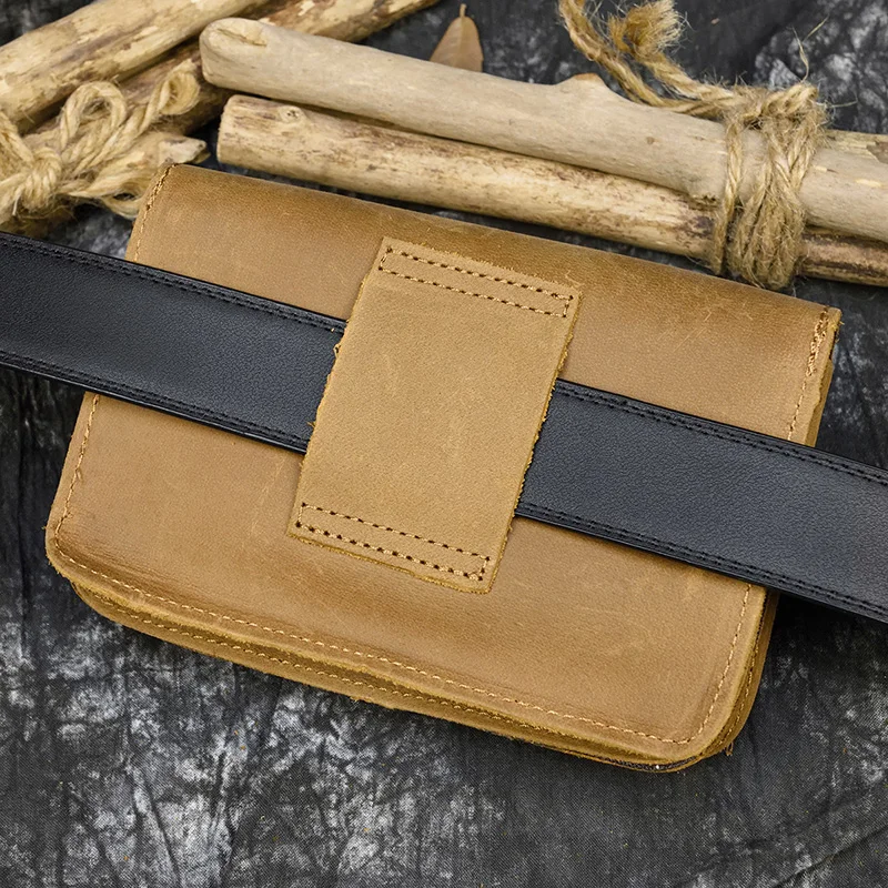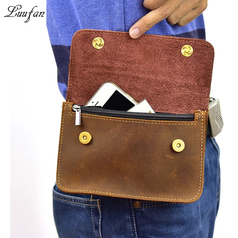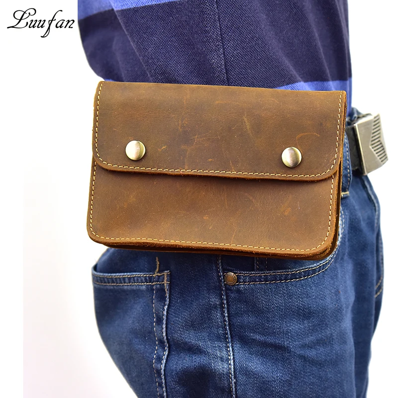Men's Genuine leather waist bag for iPhone crazy horse leather belt bag cow leather snap wallet 2 use Real leather clutch bag