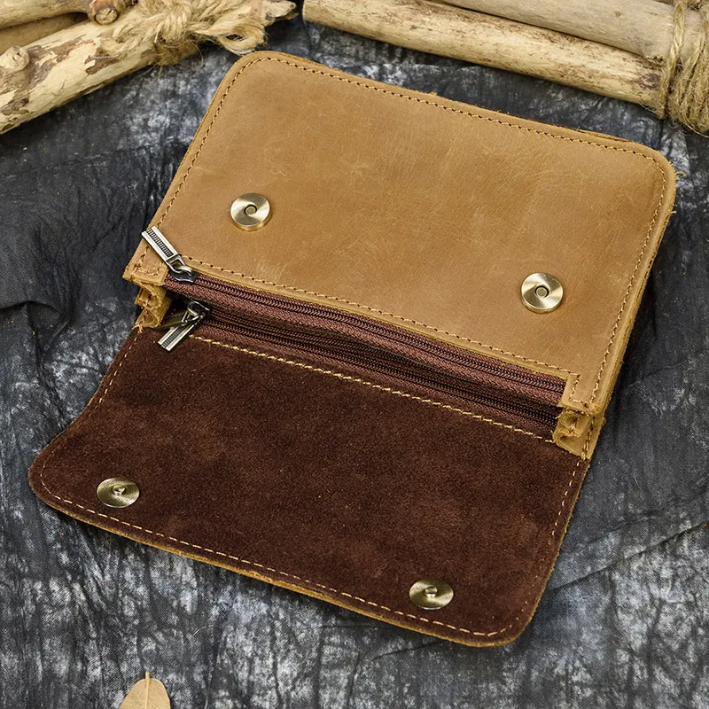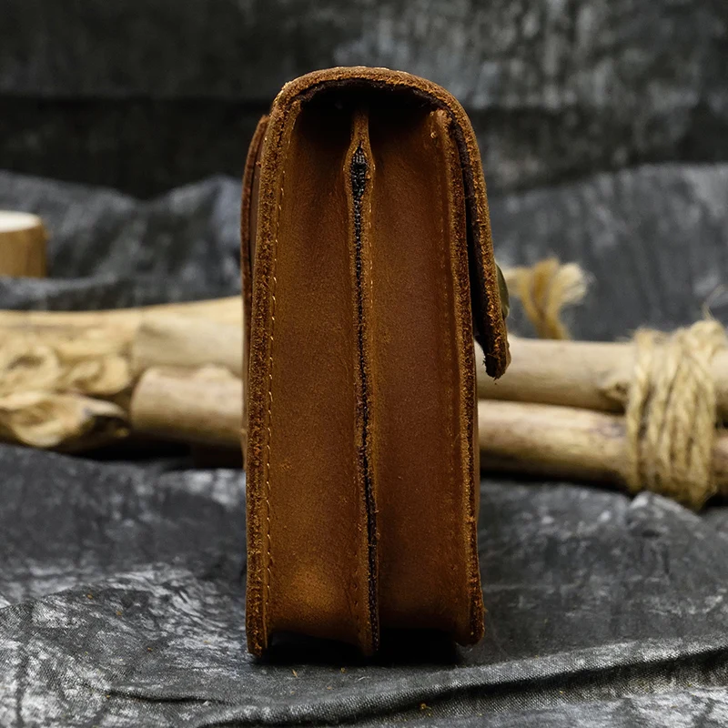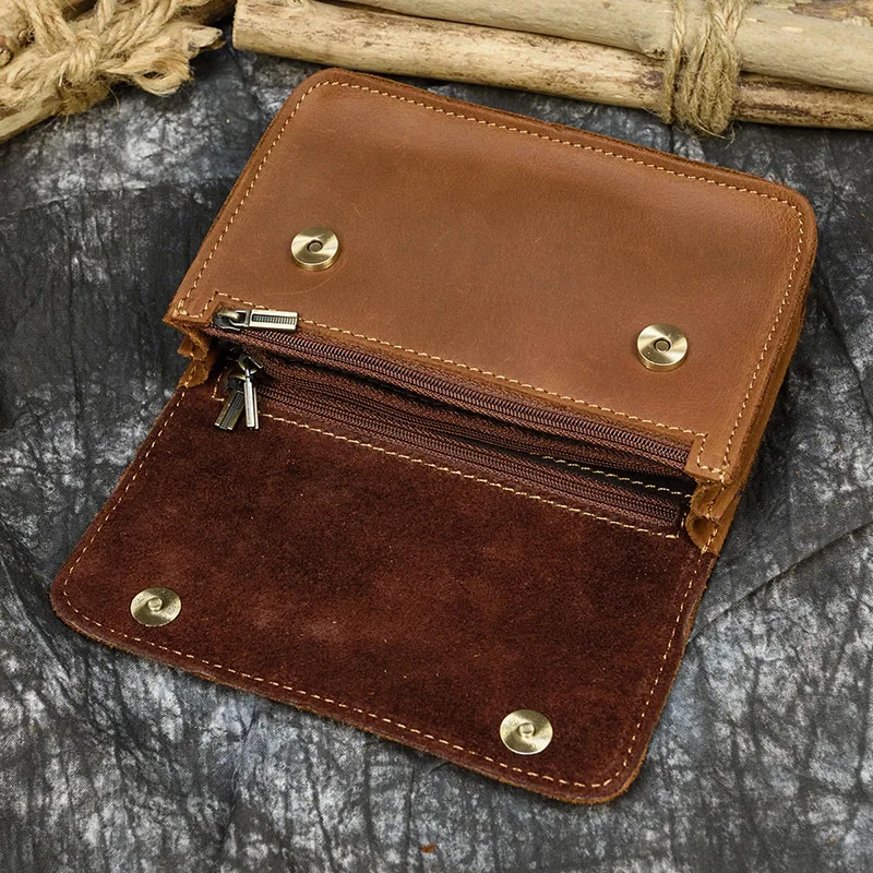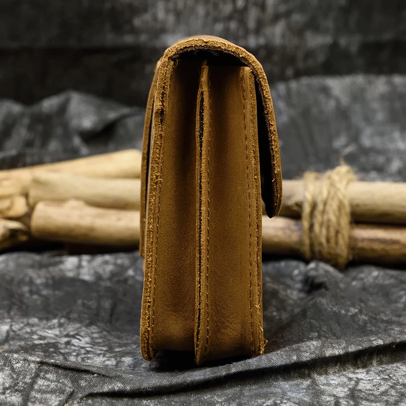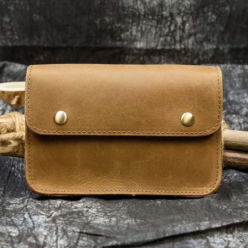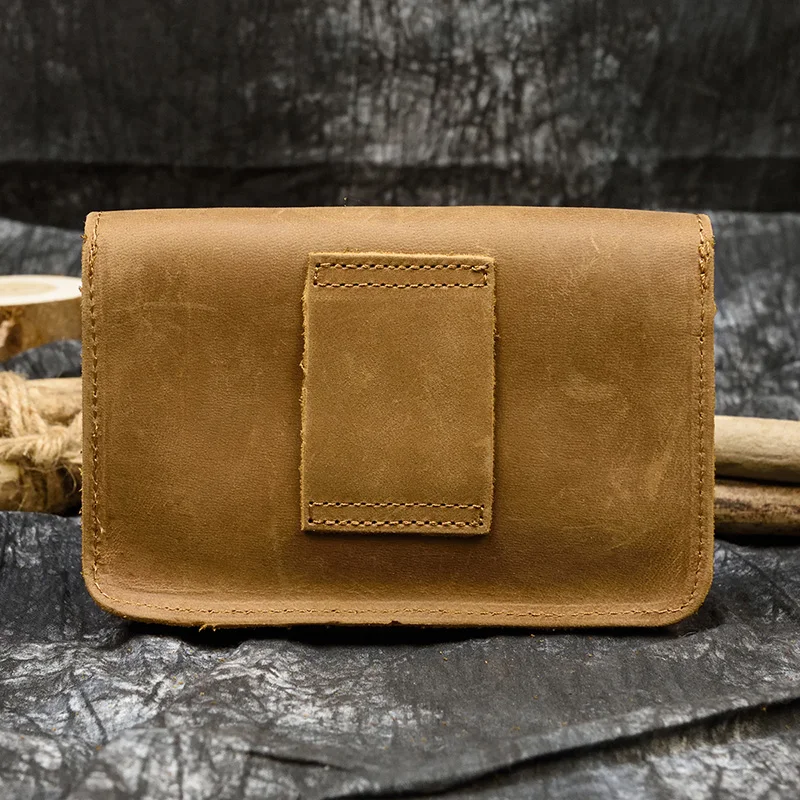 Men's Genuine leather waist bag for iPhone crazy horse leather belt bag cow leather snap wallet 2 use Real leather clutch bag