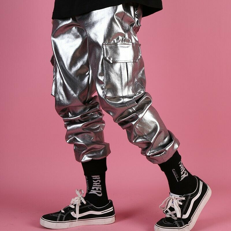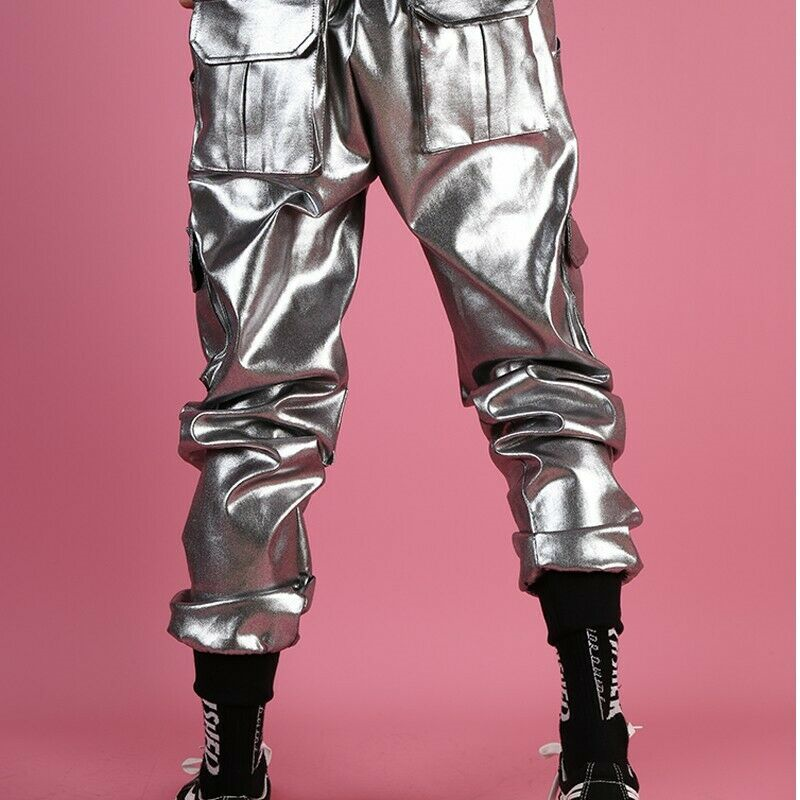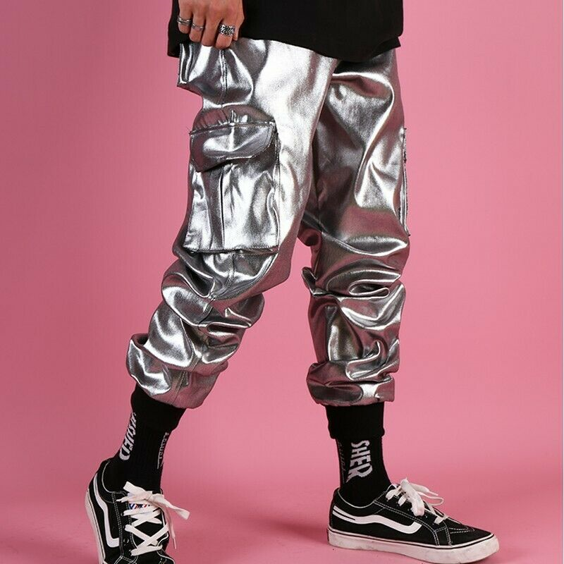 Men's Glossy Harem Pants Nightclub Trousers Hip Hop Dance Shiny Multi-pocket New