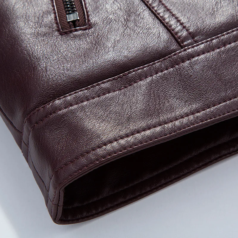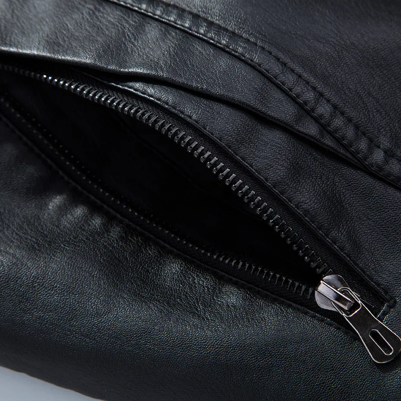 Mens Leather Jacket Coat Moto Casual Slim Leather Jackets 2023
