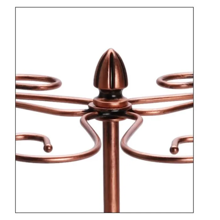 Metal Tabletop Stemware Storage Rack Wine Glass Cup Holder with 6 Hooks for Home TB Sale