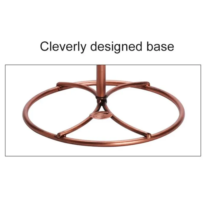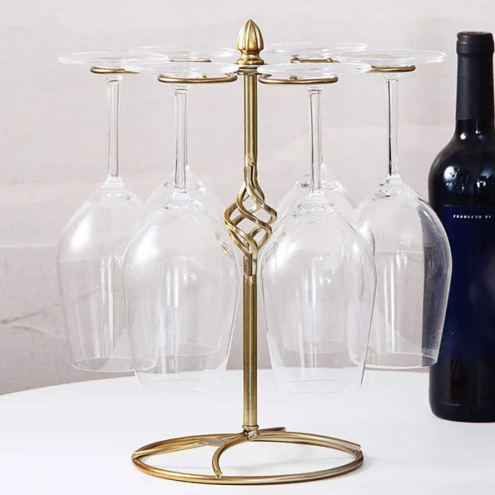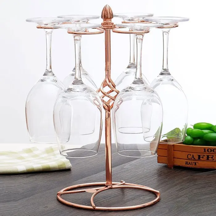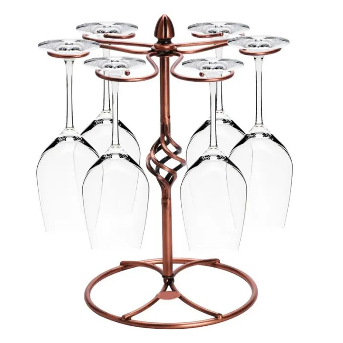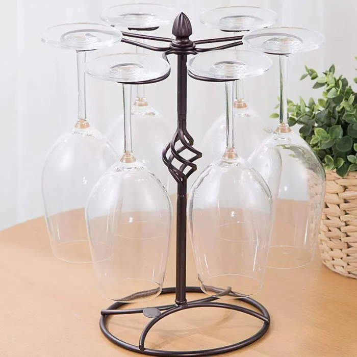 Features 6 curved wine glass hook that are designed to rotate on the central pole.