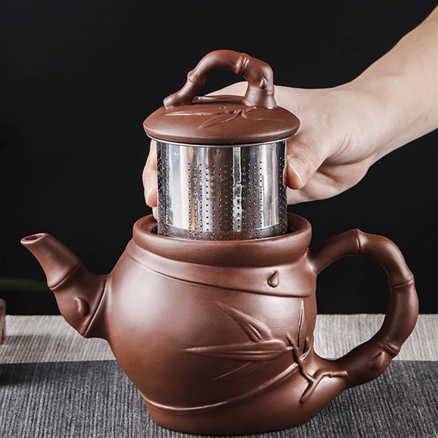 MIKMAX Teapot Zisha Pot Large Capacity Bamboo Teapot Built-in Stainless Steel Filter Teapot Tea Set Tea Cup Set