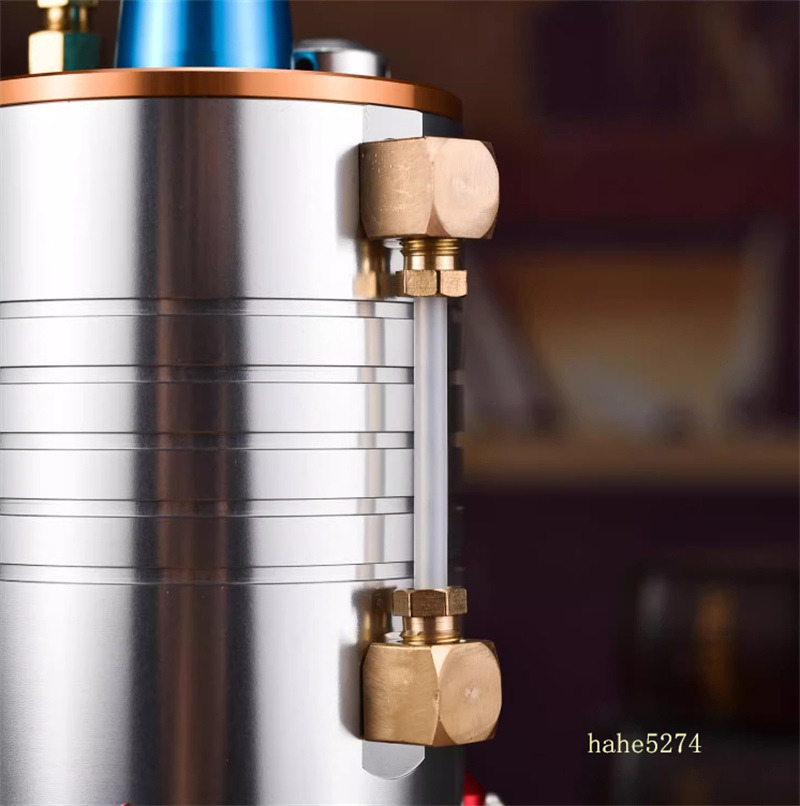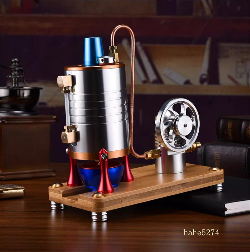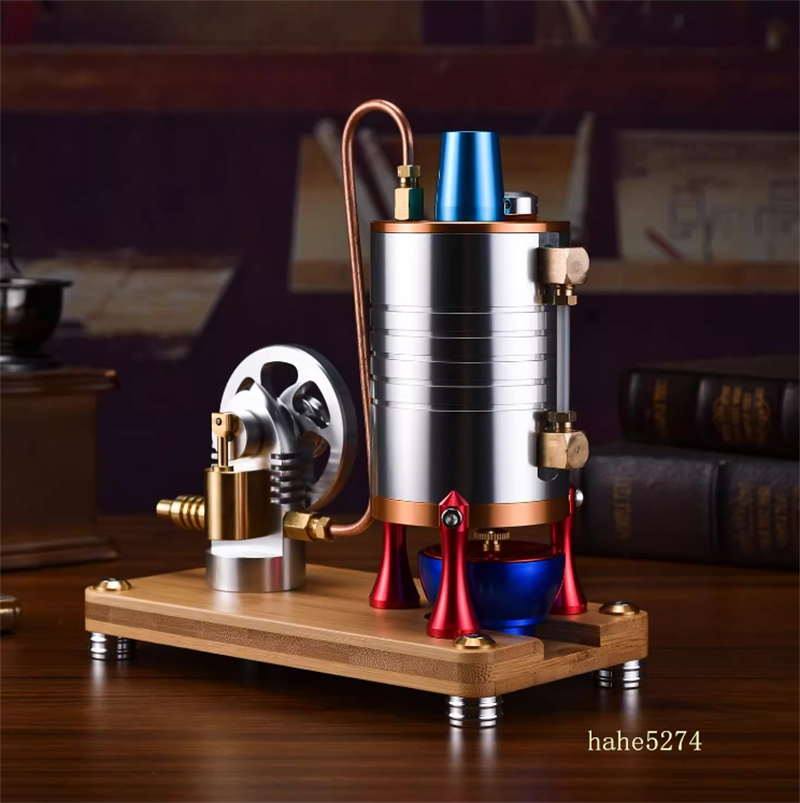 - Aluminum Alloy Integrated Molded Conical Combustion Steam Engine Model Toy: A larger cylinder requires a boiler with a greater capacity to drive it; therefore, the vertical boiler has been redesigned. The core is machined from 6061 aluminum alloy on a CNC lathe into a conical combustion chamber, which has a larger surface area to absorb the heat generated by the alcohol lamp. This design aims to maximize combustion efficiency within the limited size of the boiler, thereby producing sufficient steam (large heat absorption, high efficiency conversion).