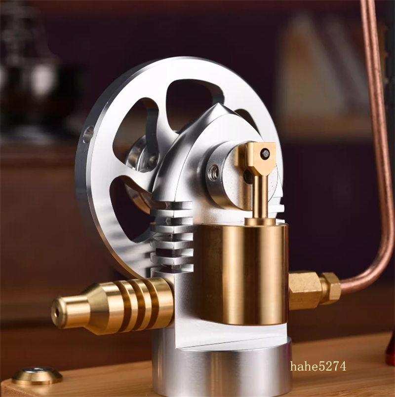 - The crankshaft, connected to the top of the piston, drives the piston in a synchronized rotation. The inertia of the flywheel causes the cylinder's air port to align with the intake hole of the main support bracket, resulting in a pressure drop within the cylinder, which halts the forward movement of the piston. As it continues to rotate, the cylinder’s air port moves to the position of the exhaust port on the main support bracket. The piston, following the crankshaft's rotation, retracts while simultaneously expelling the steam from the cylinder. This process continues, allowing the cylinder to enter the next cycle of work, repeating indefinitely.