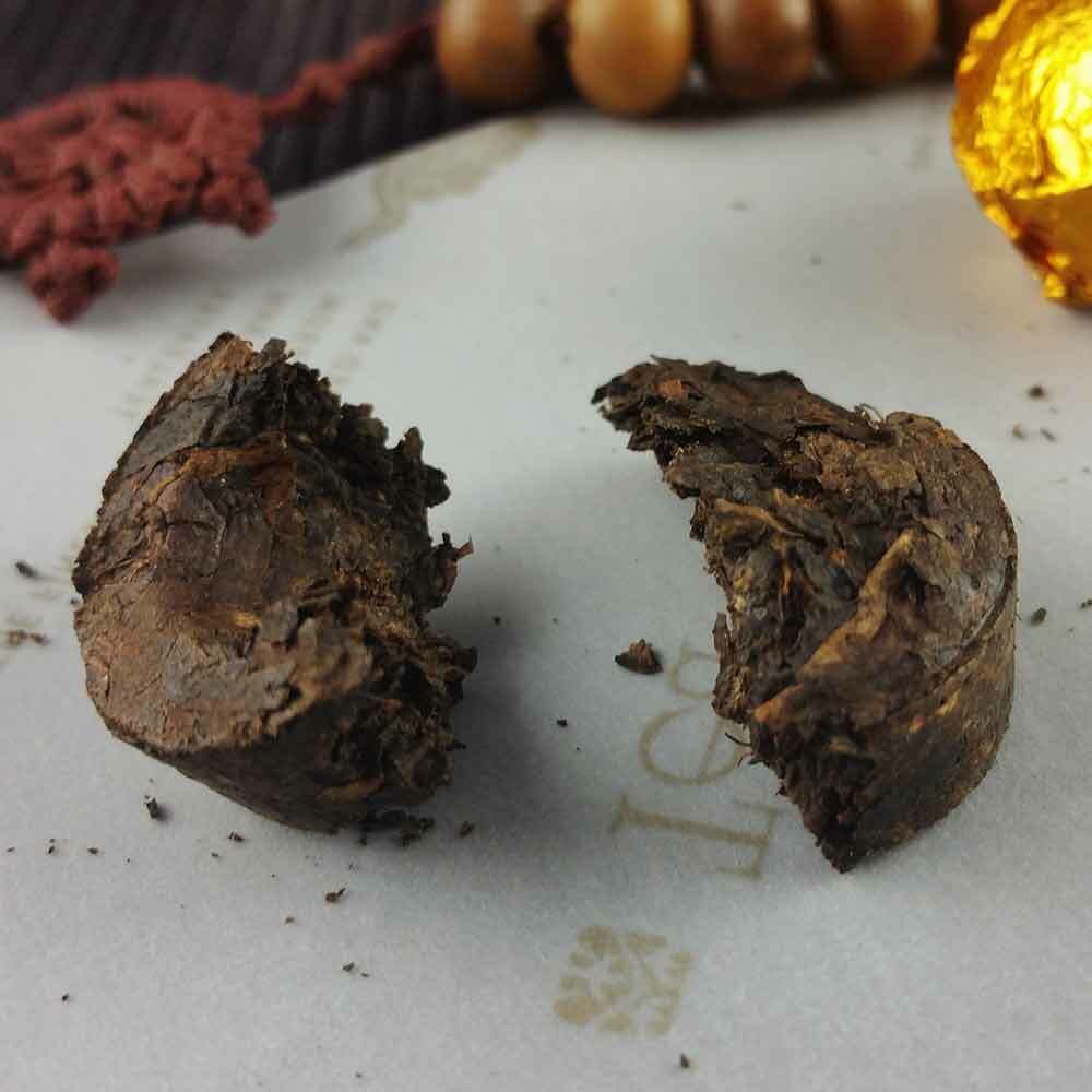Pu'er Ripe tea is Yunnan Dayezhong, sun dried green tea as raw material, after fermentation and processing of tea. The color is brown and red, and its taste is pure and harmonious. It has unique Chen Xiang.