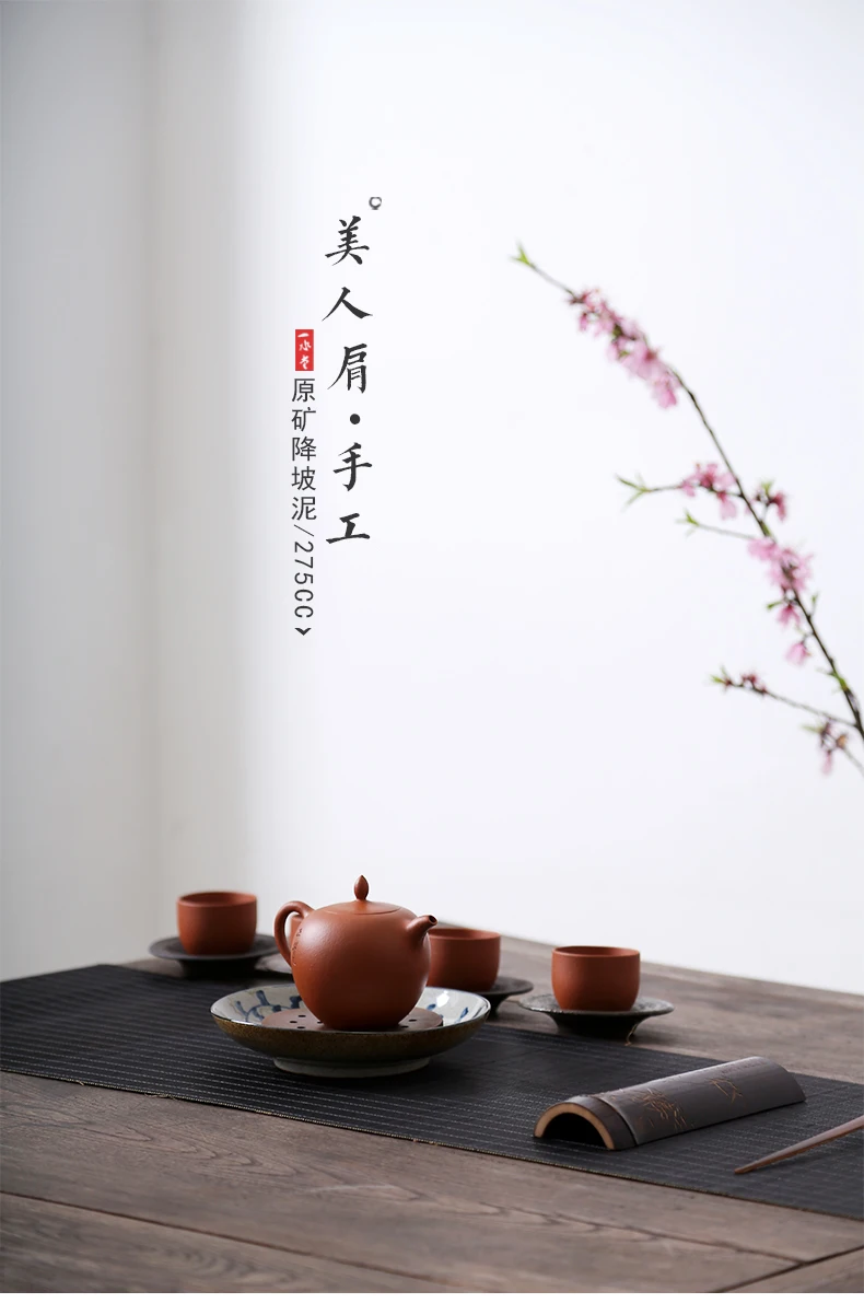 Monohydrate hall of yixing purple clay ore famous kung fu tea set down by hand shoulder slope mud beauty pot of 275 ml