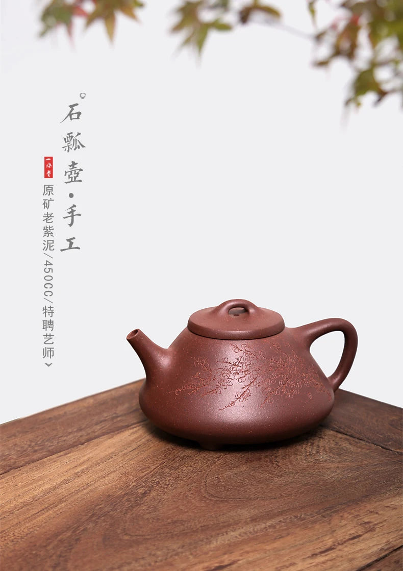Monohydrate hall yixing recommended the teapot tea pure manual and old purple clay stone gourd ladle pot of 450 cc
