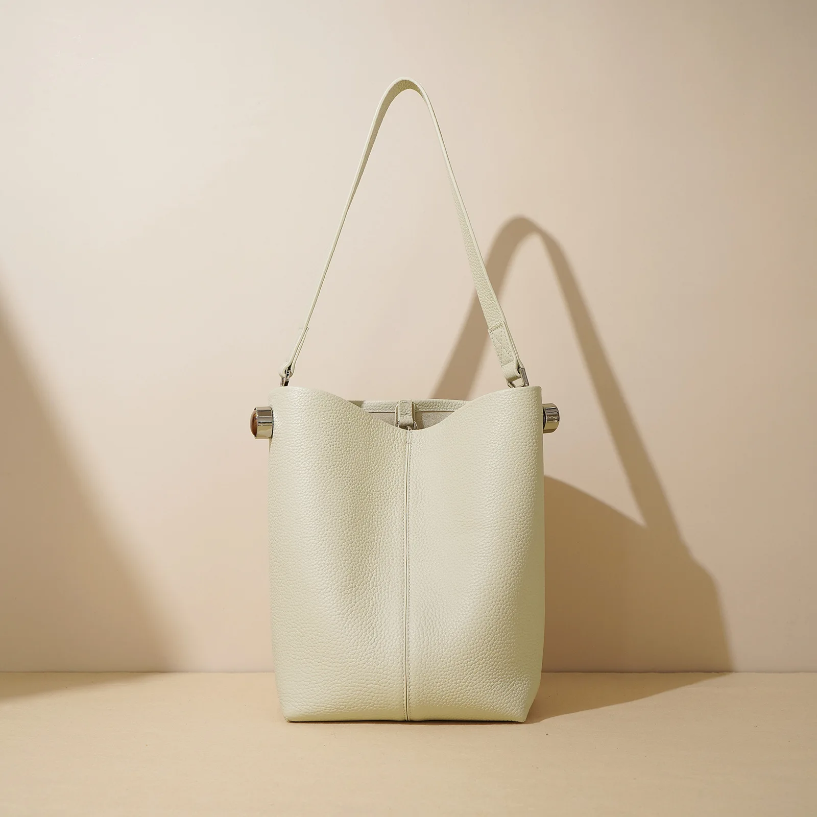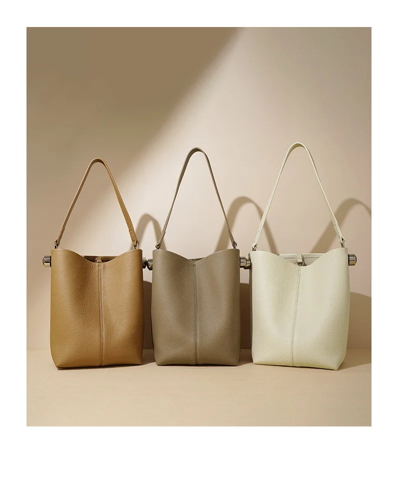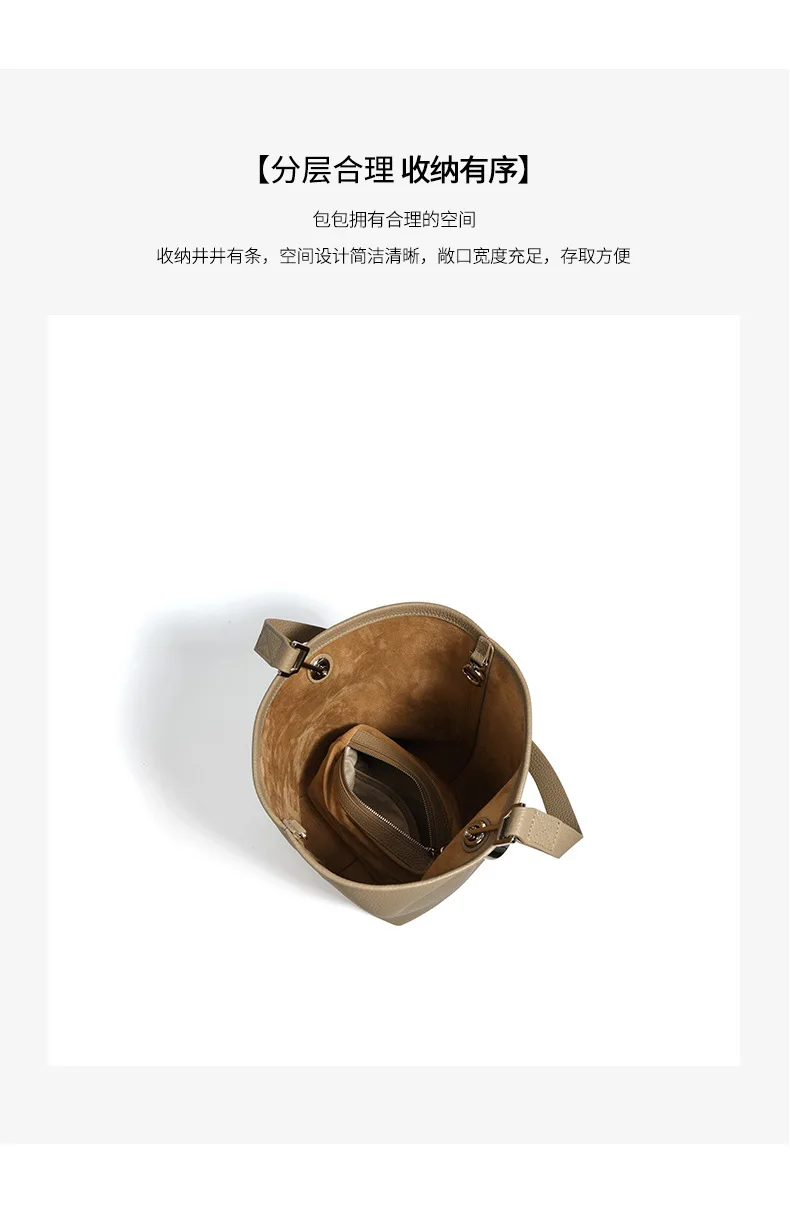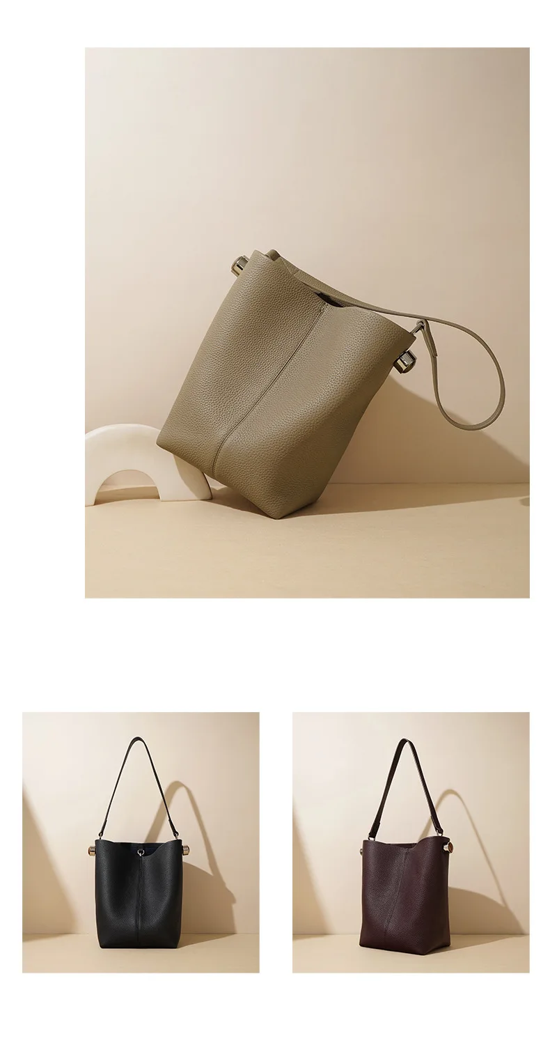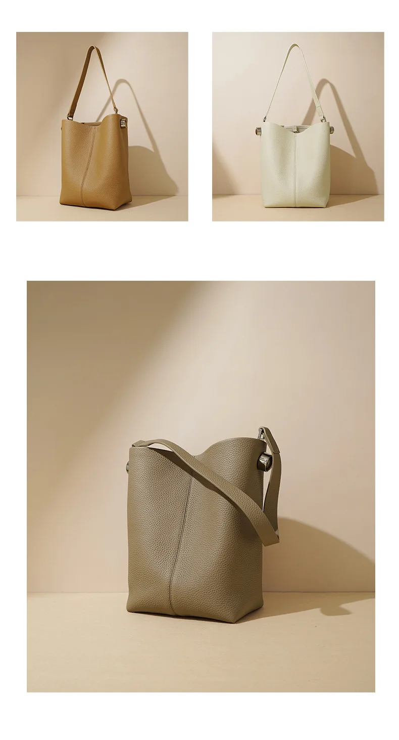 Motingsome Bucket Bag Women Simple First-layer Cowhide Tote Large Capacity Versatile Fashion Commuter Shoulder Handbag 2024 New