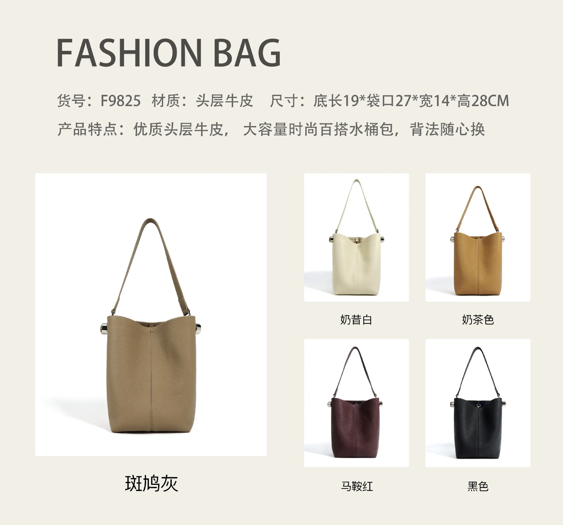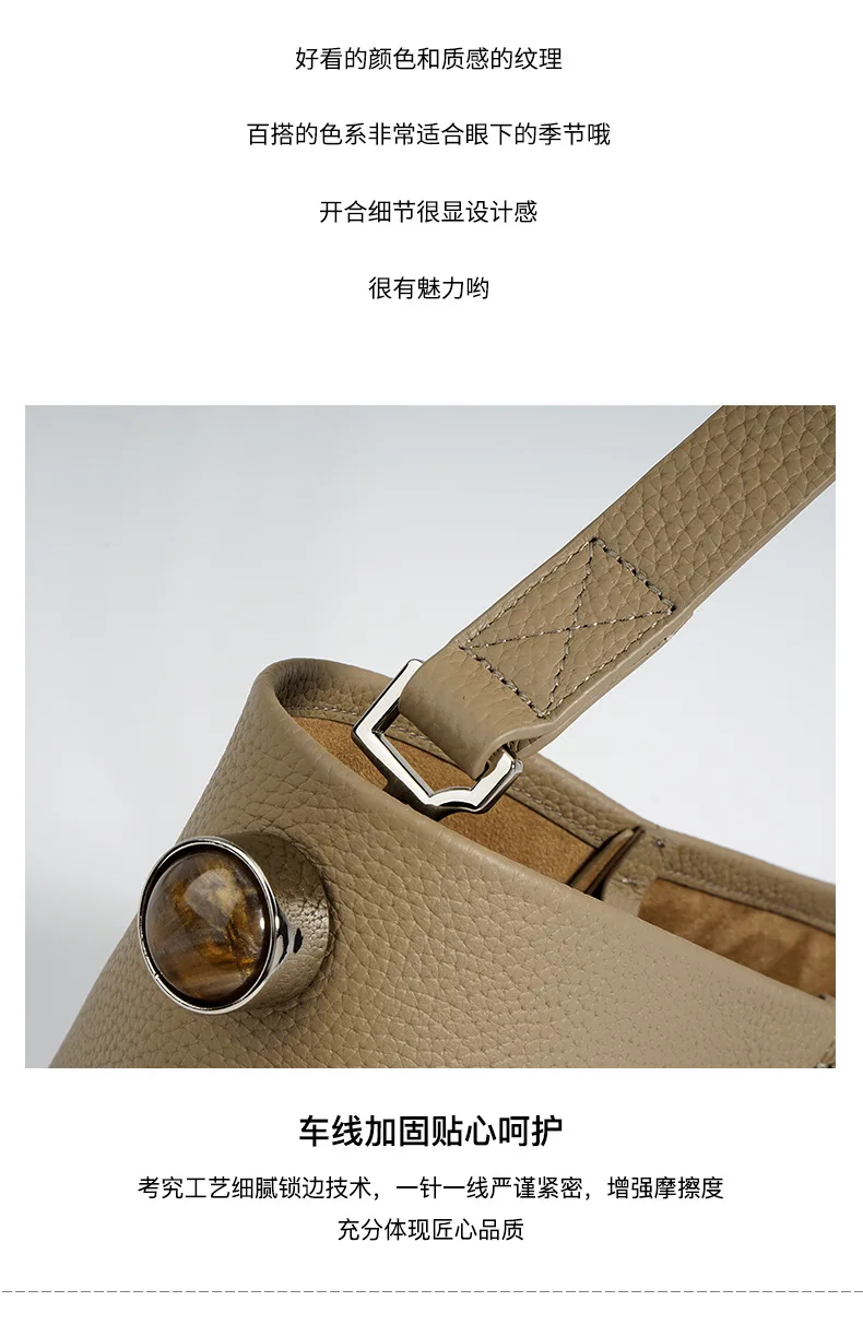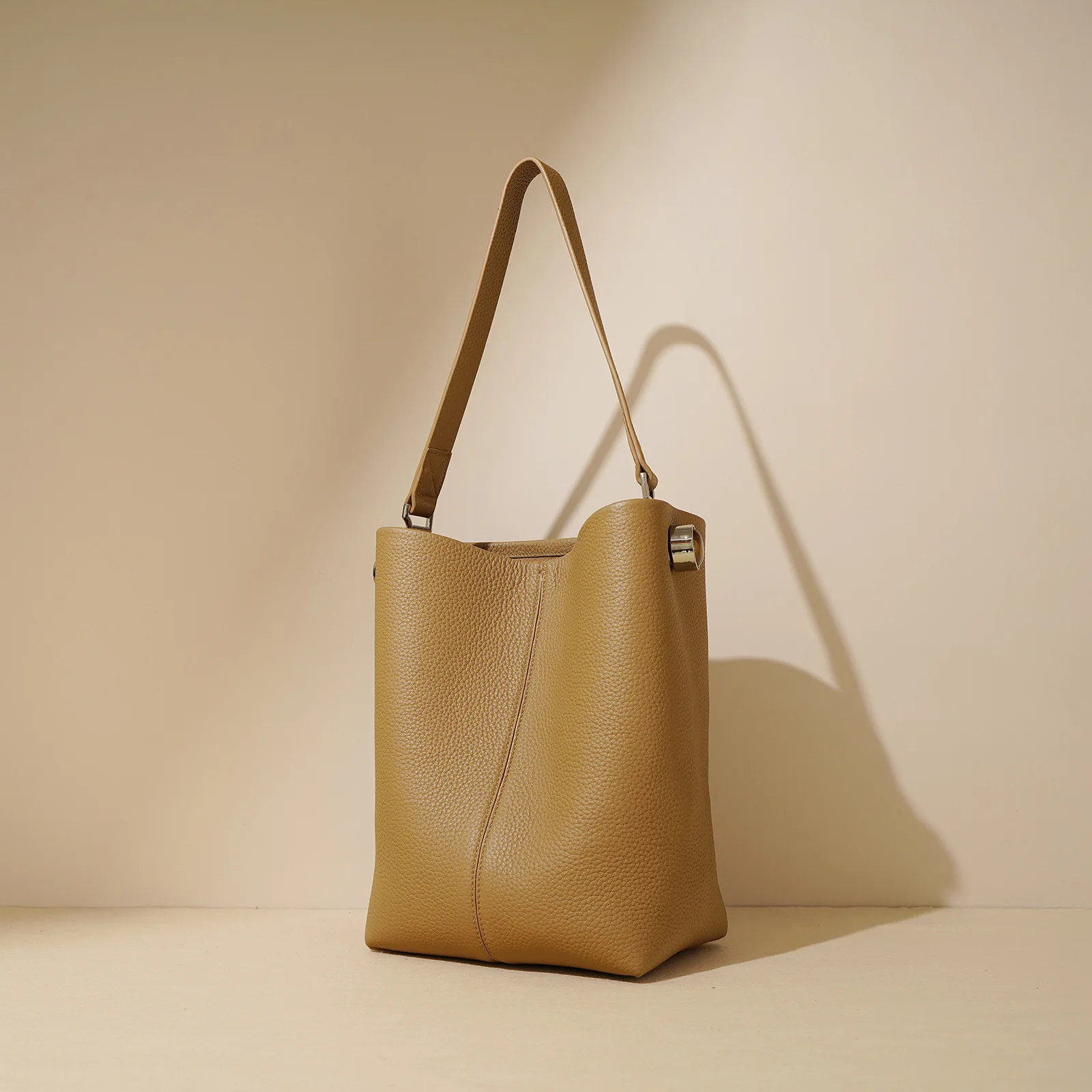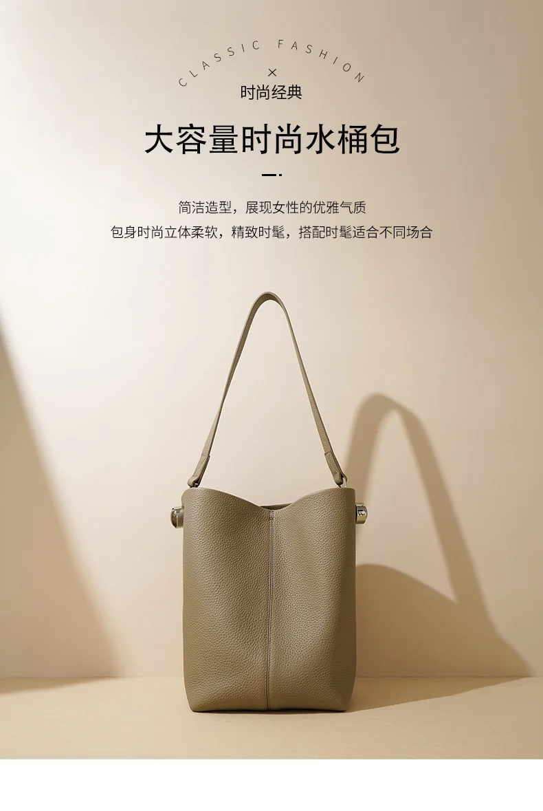 Motingsome Bucket Bag Women Simple First-layer Cowhide Tote Large Capacity Versatile Fashion Commuter Shoulder Handbag 2024 New
