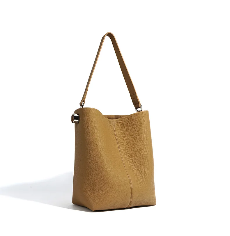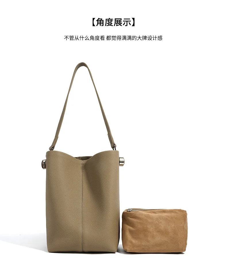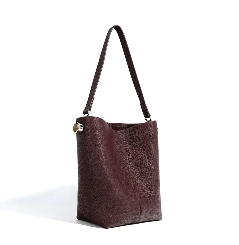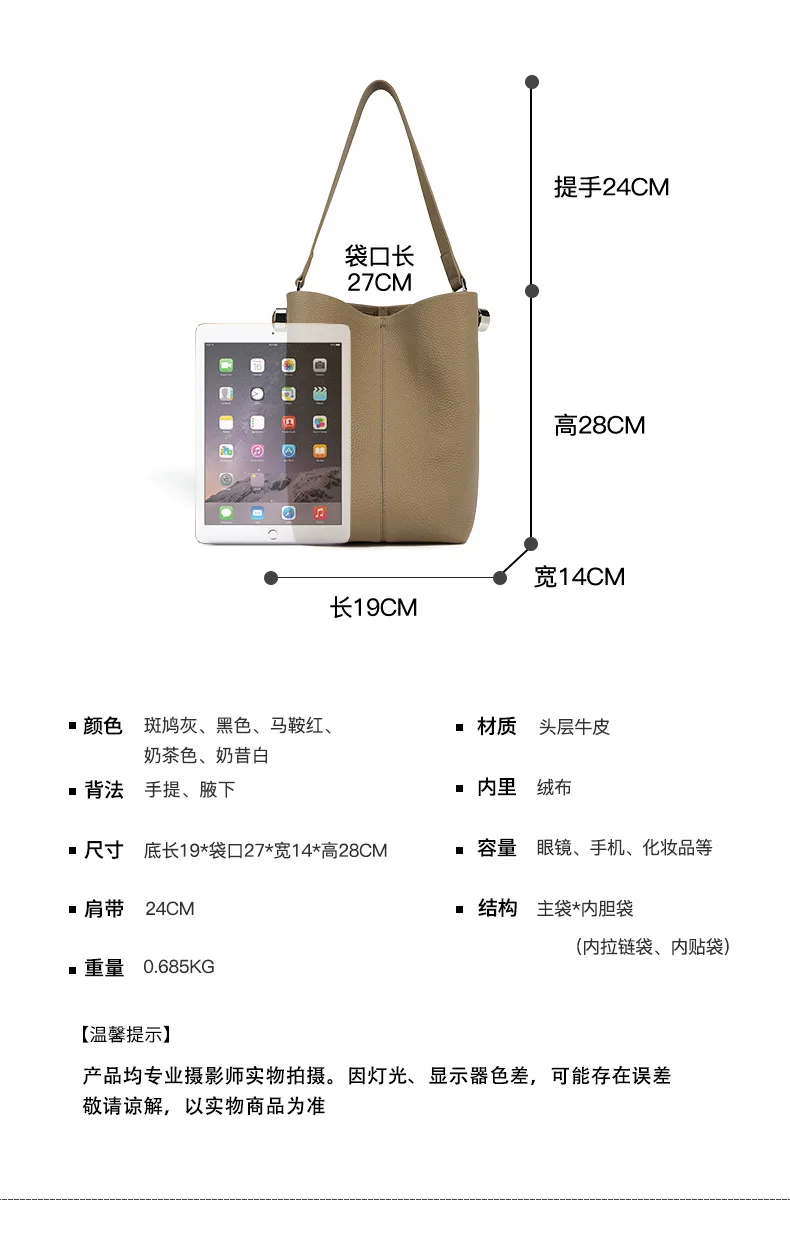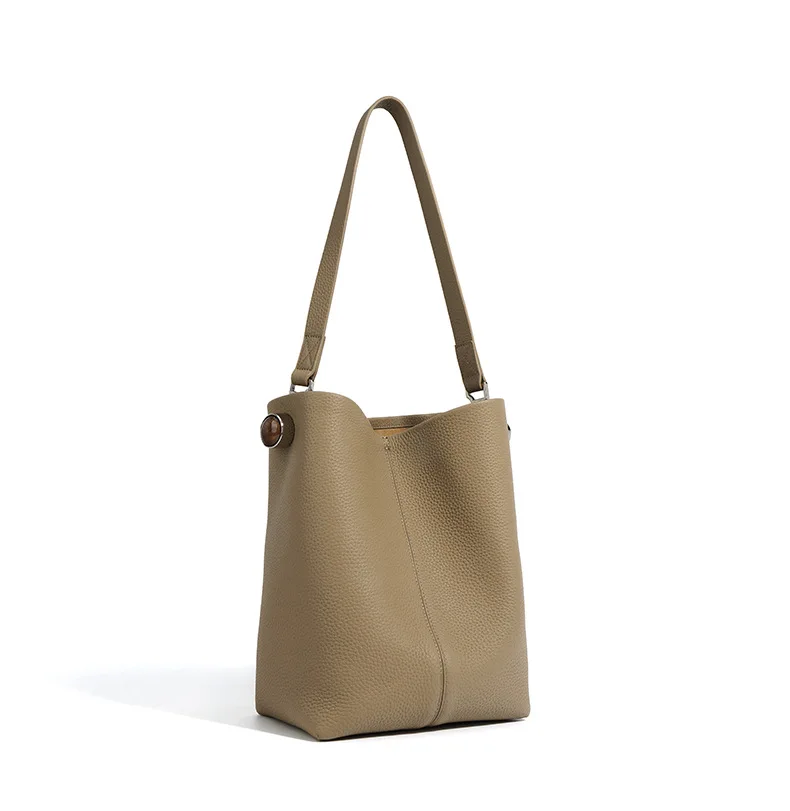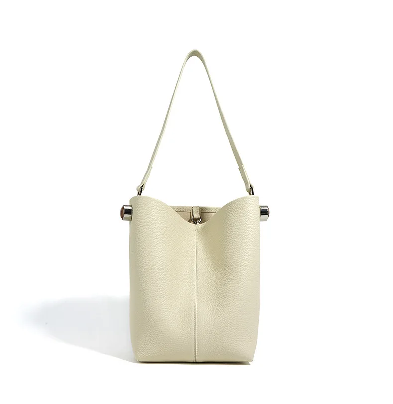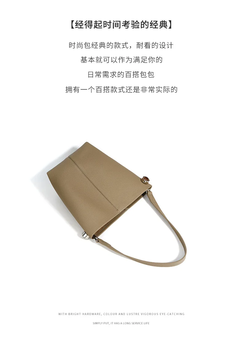 Motingsome Bucket Bag Women Simple First-layer Cowhide Tote Large Capacity Versatile Fashion Commuter Shoulder Handbag 2024 New