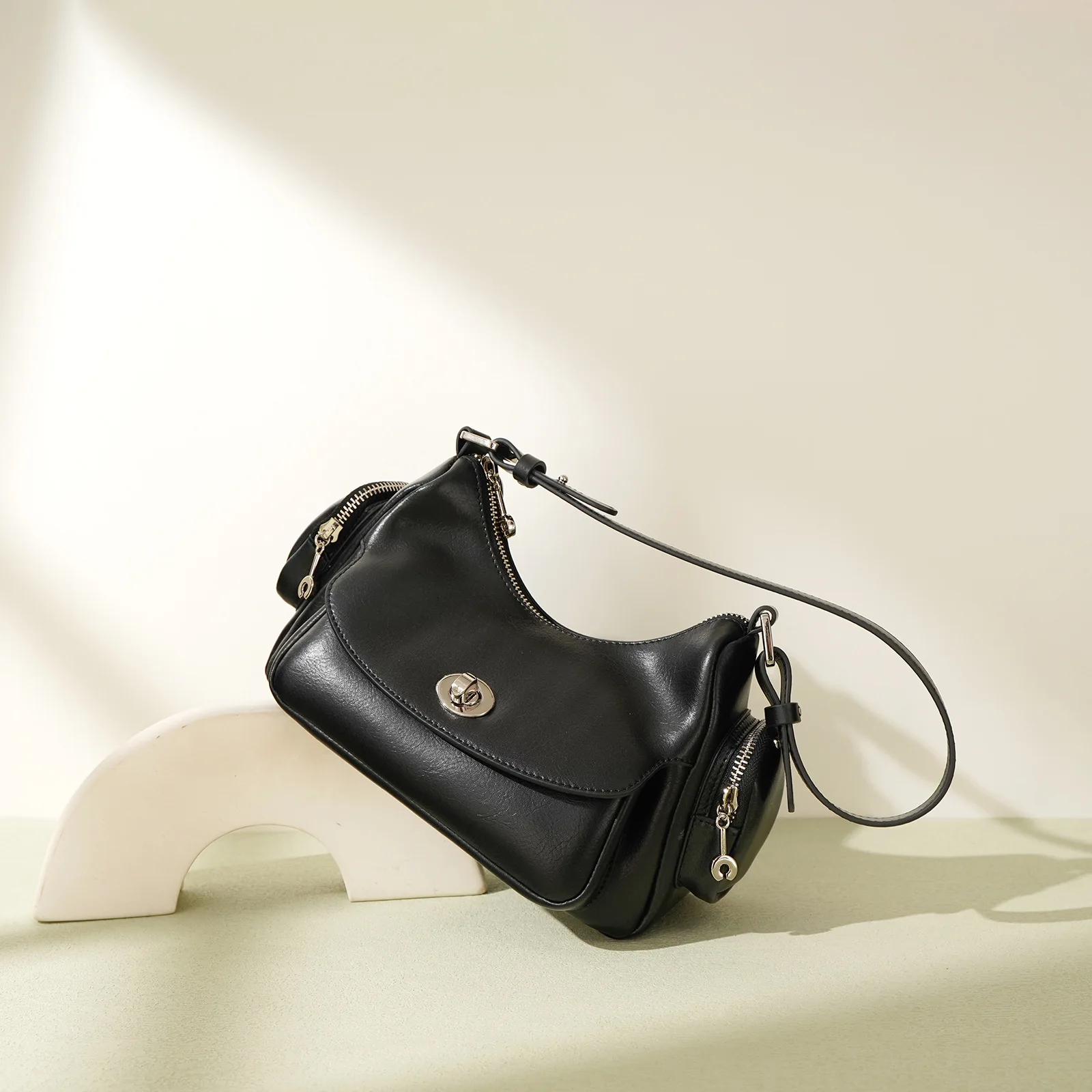 Motingsome Fashionable Women Shoulder Bag Punk Girls Motorcycle Bag Underarm Messenger Tote Chic Lady Daily Purse Black 2024 New